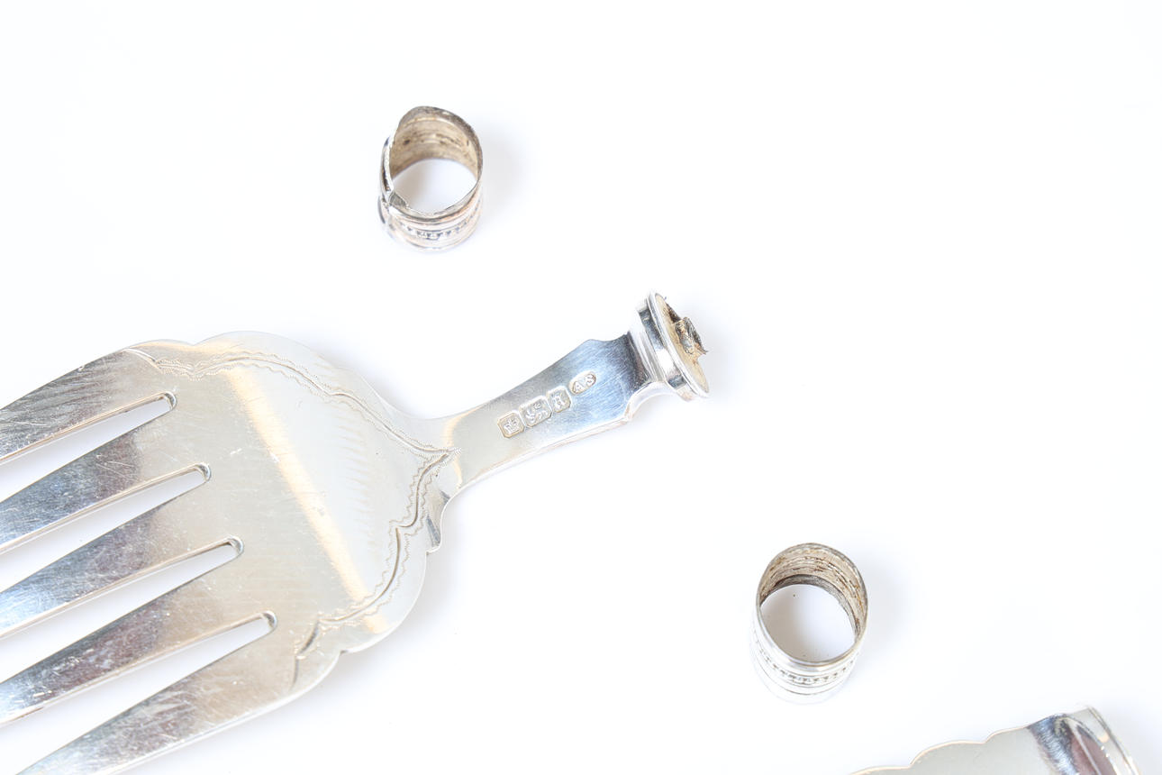4364451. ETT SILVERFISKSERVERBLAD OCH GAFFELPINNAR, TVÅ FERULER (4).