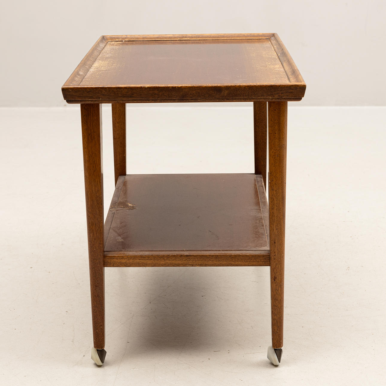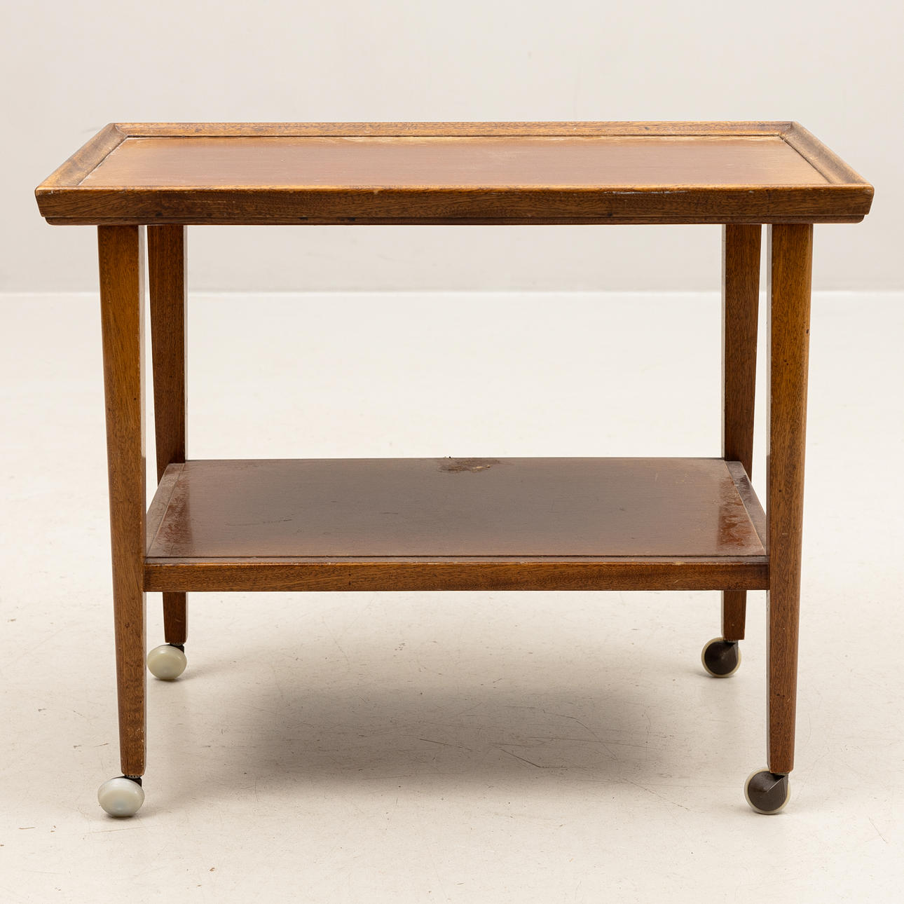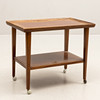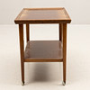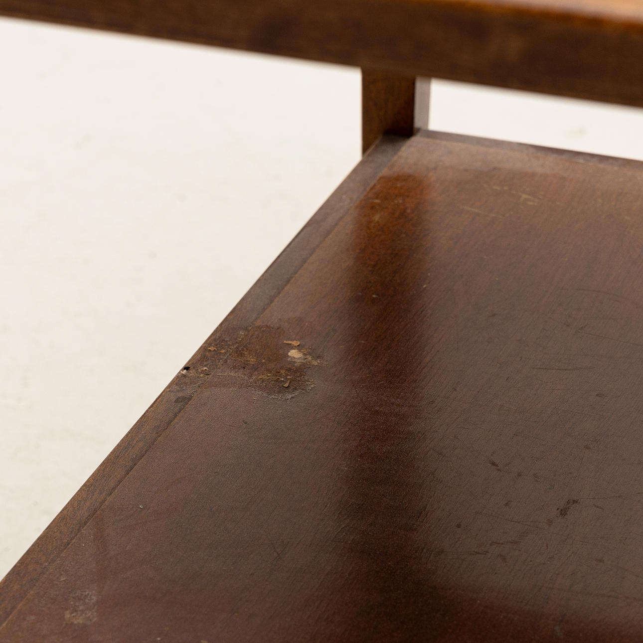 I två plan, längd ca 68, bredd 43 och höjd 57 cm.