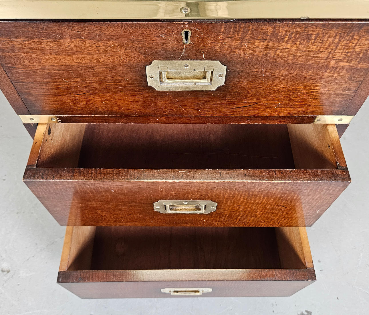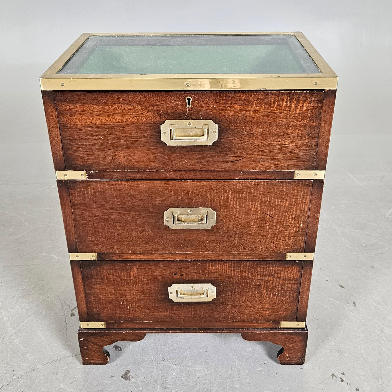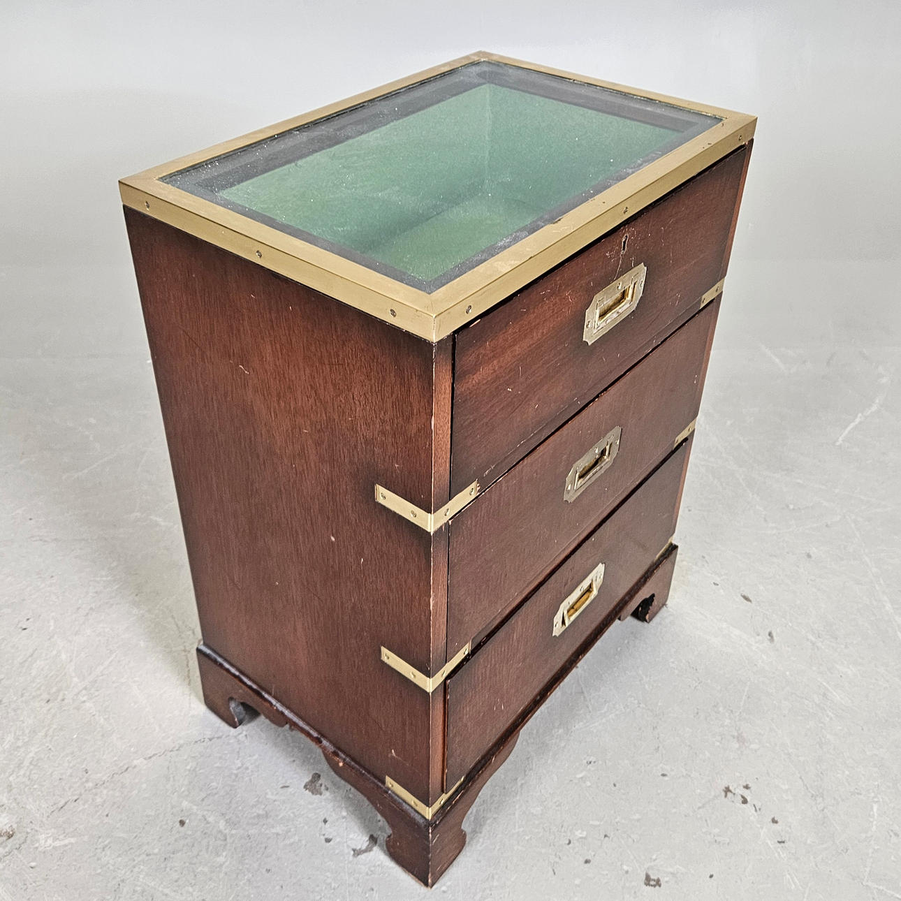 Trä, glas och mässing.
