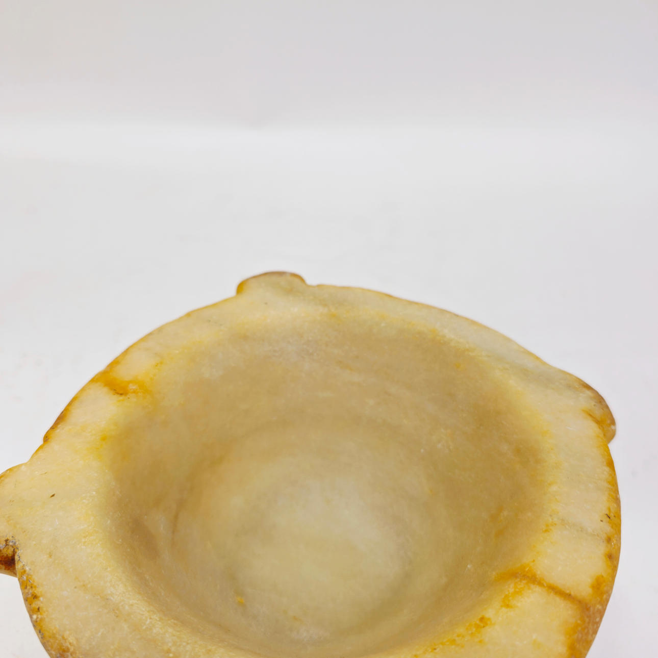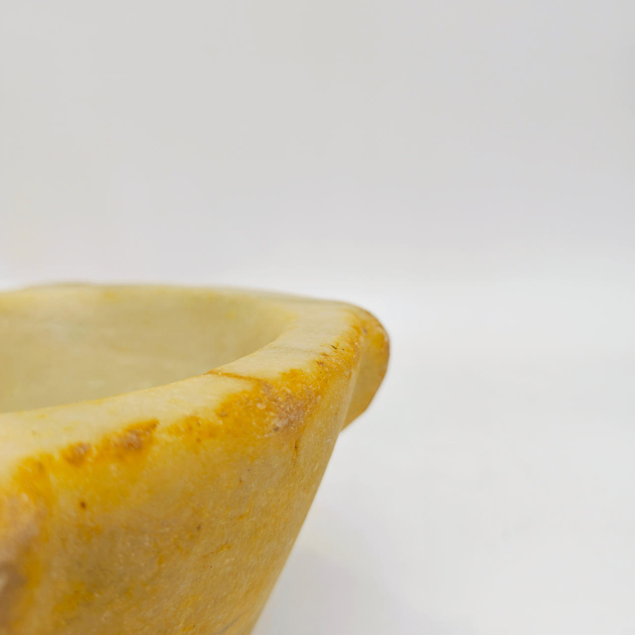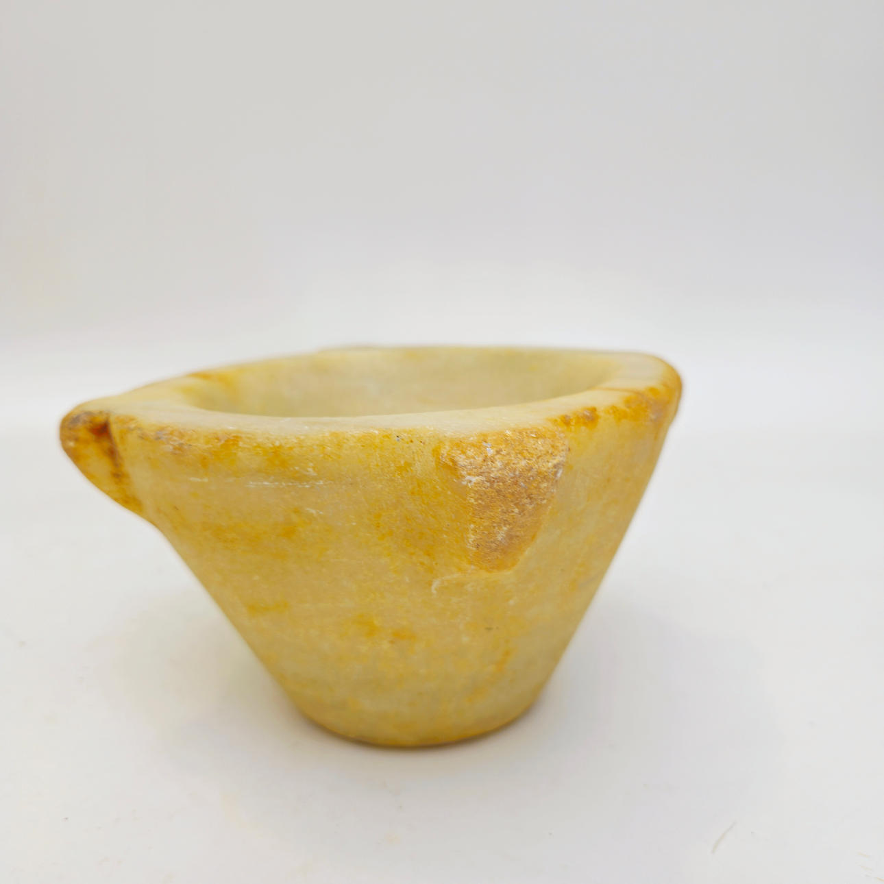 Med tecken på användning och patina av användning.