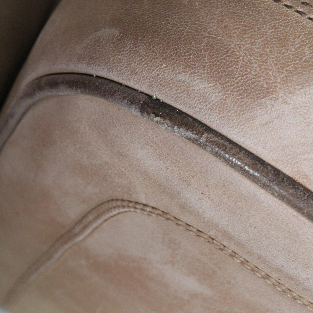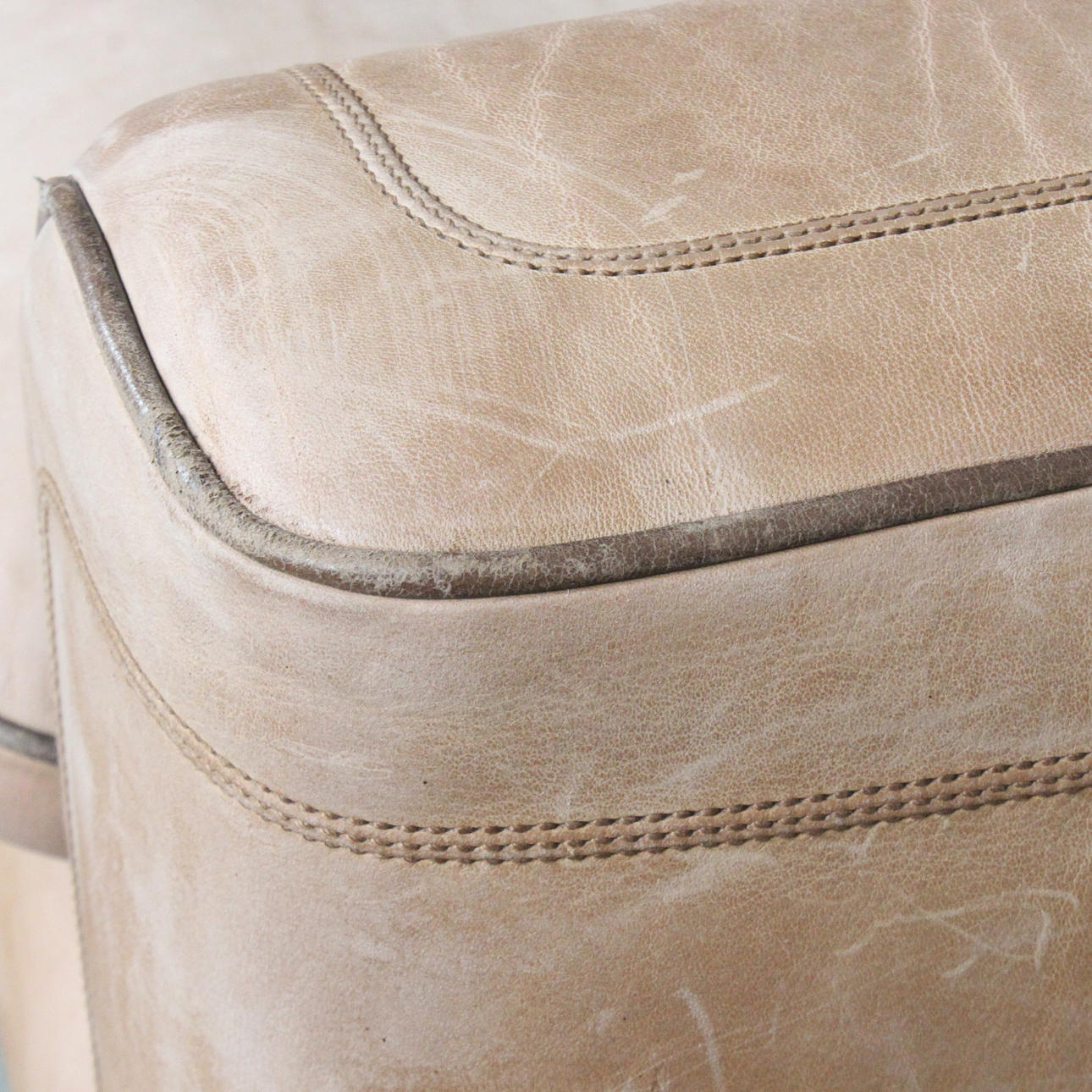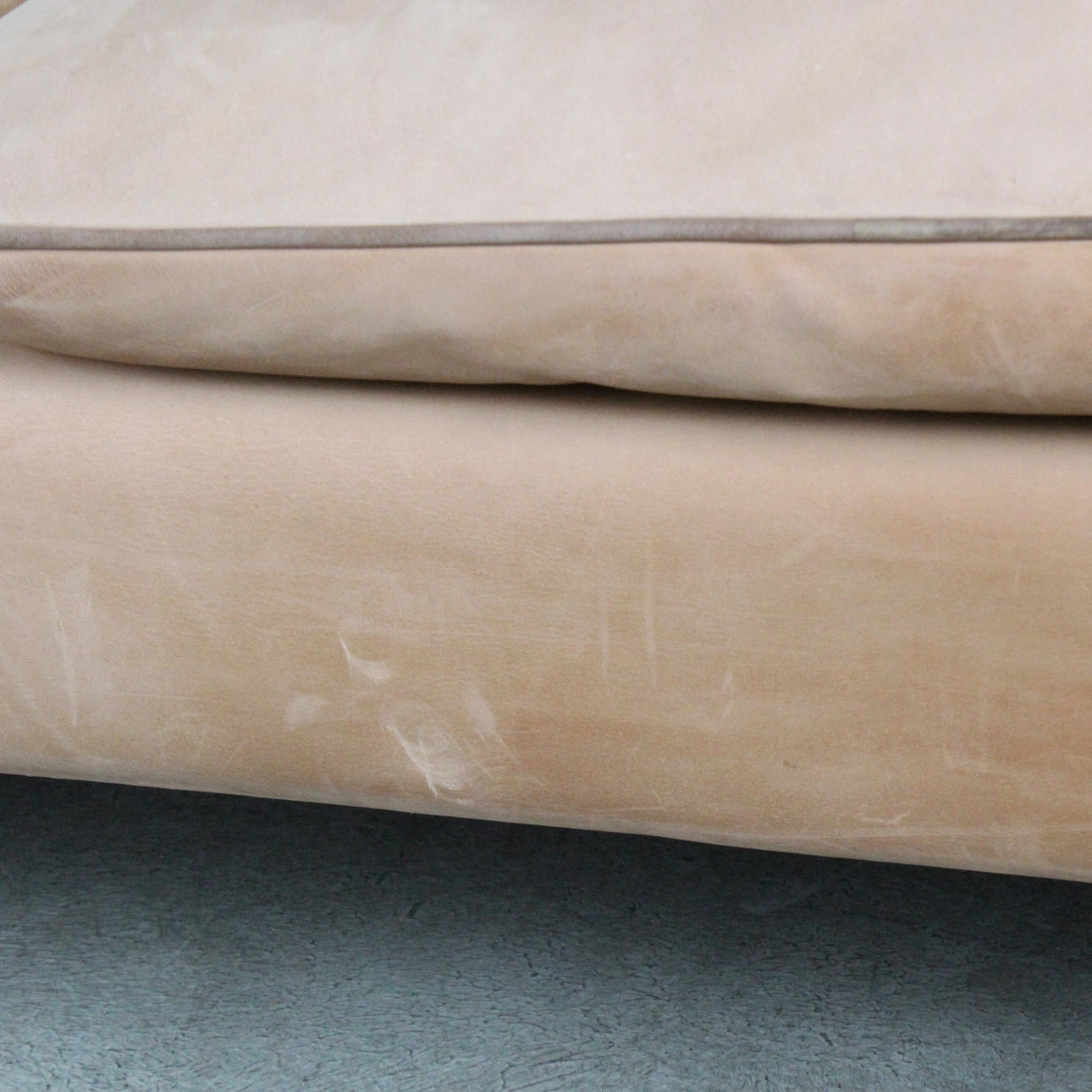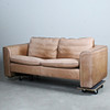 De Sede, soffa/tvåsitsig, läder, Schweiz, 1970-tal, stoppad konstruktion täckt med ljusbrunt läder, sits och ryggklädsel, klädd med tillverkare,