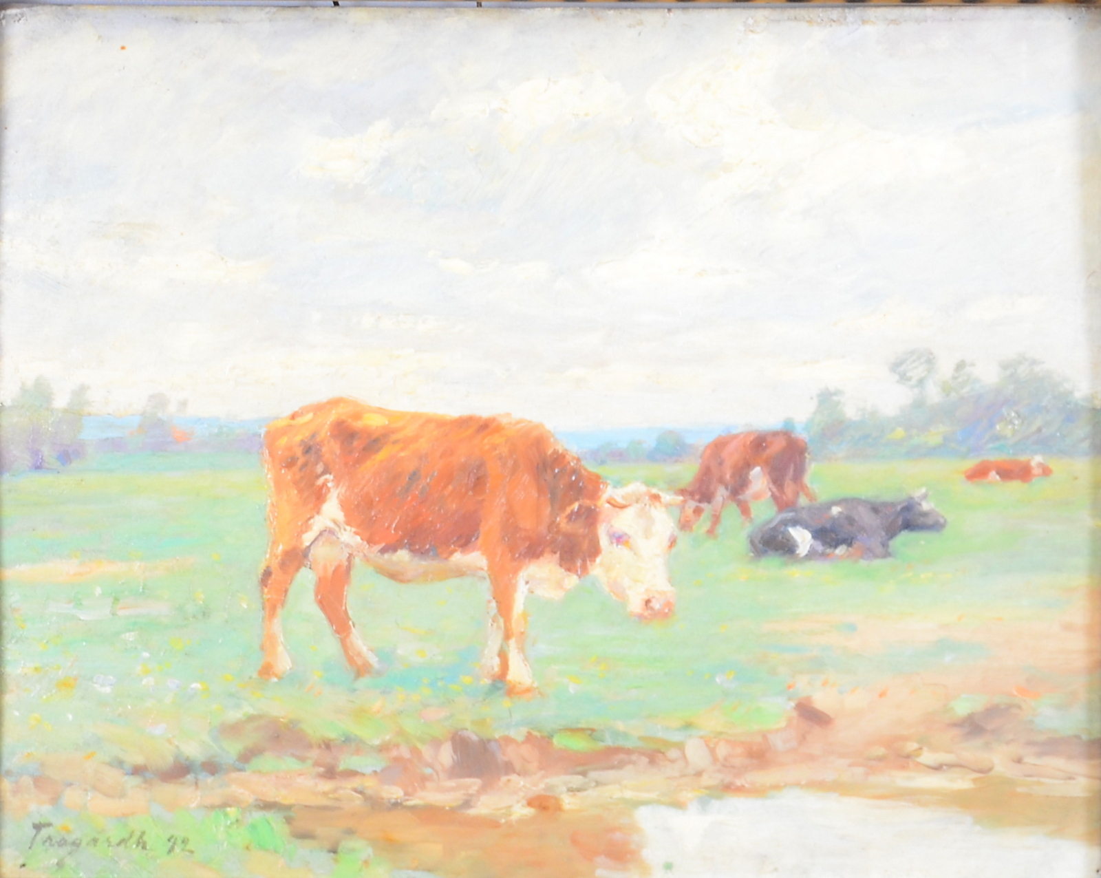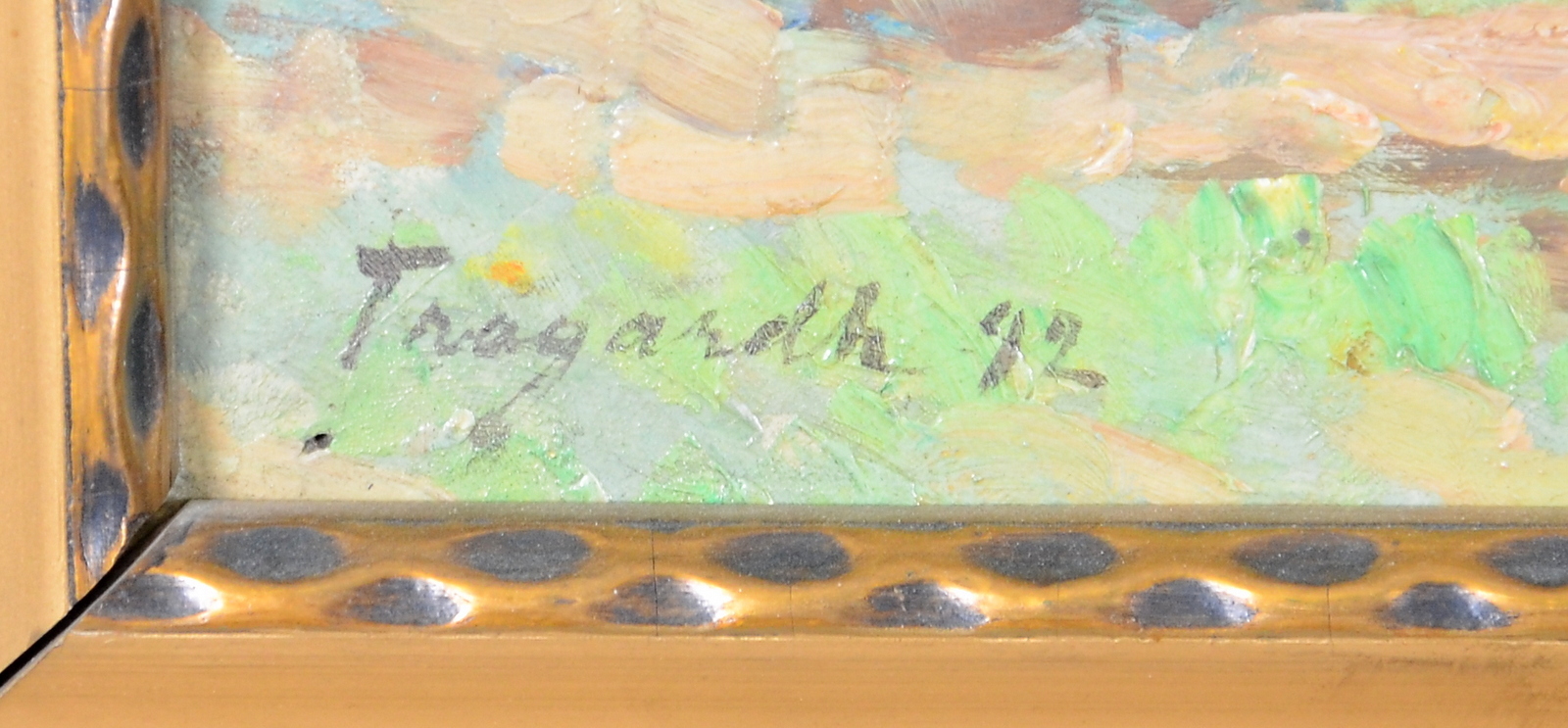 436836. CARL TRÄDGÅRDH. Olja på träpannå.