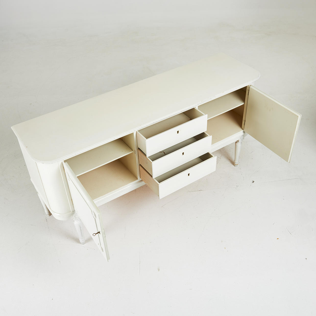 Slitage, smuts, senare bemålning.