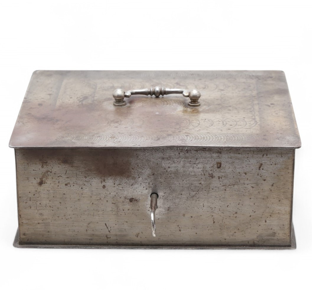 4369203. Bärbart kassaskåp i plåtjärn, från 1800-talet.