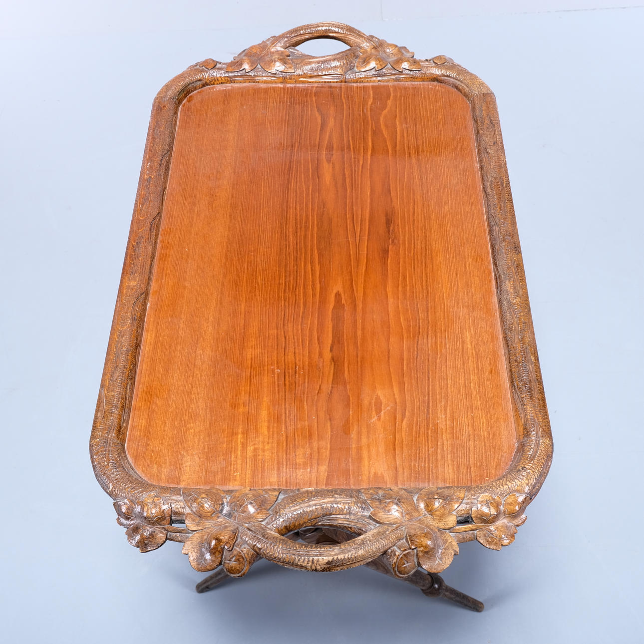 Fällbart brickbord med löstagbar bricka. Snidad dekor.