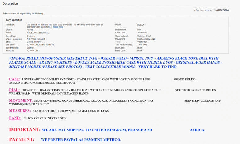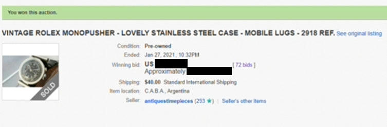 Inlämnaren köpte klockan på ebay 2021 av en klocksäljare i Argentina.