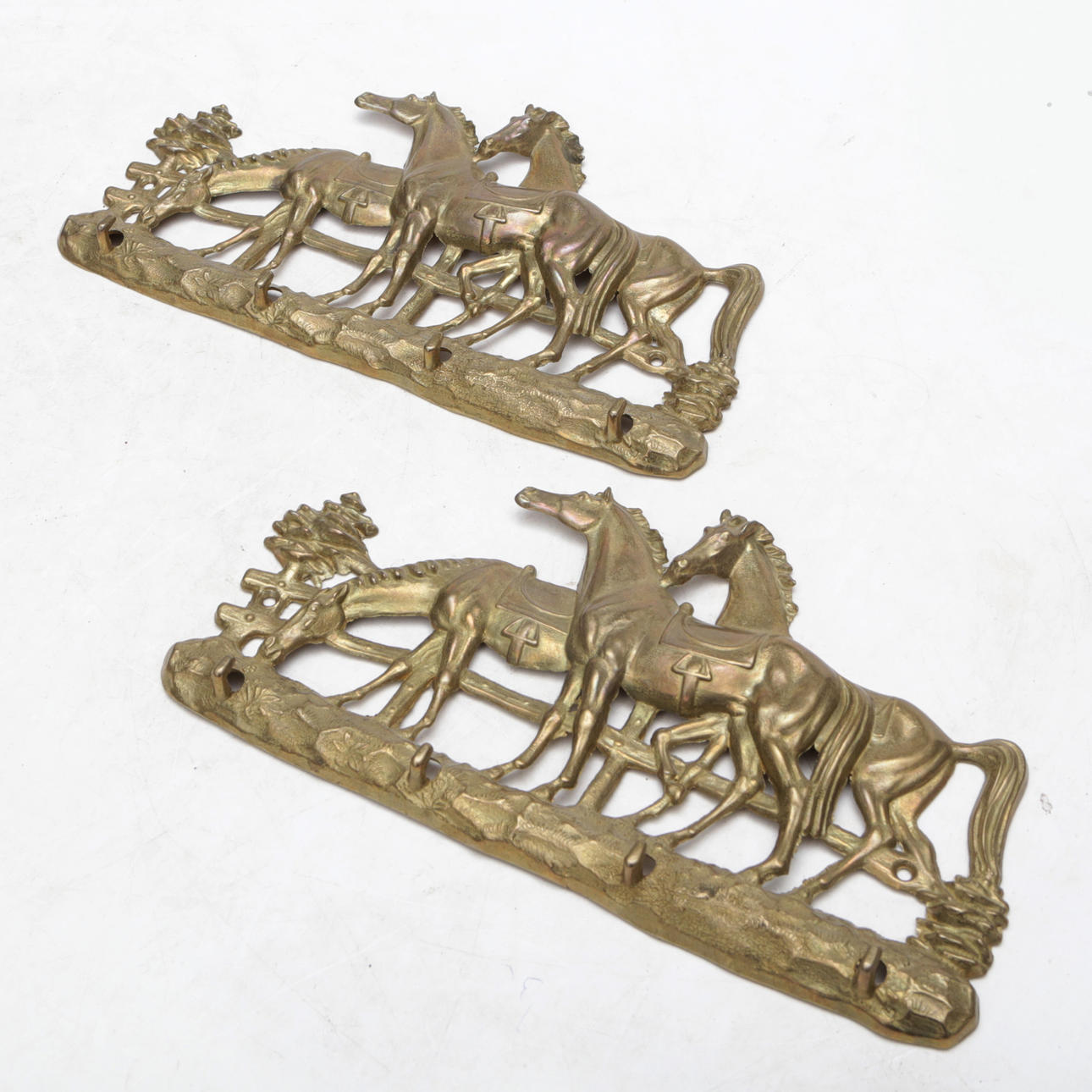 4371994. HÄNGARE, 2 st, mässing, hästdekor, 1900-tal.
