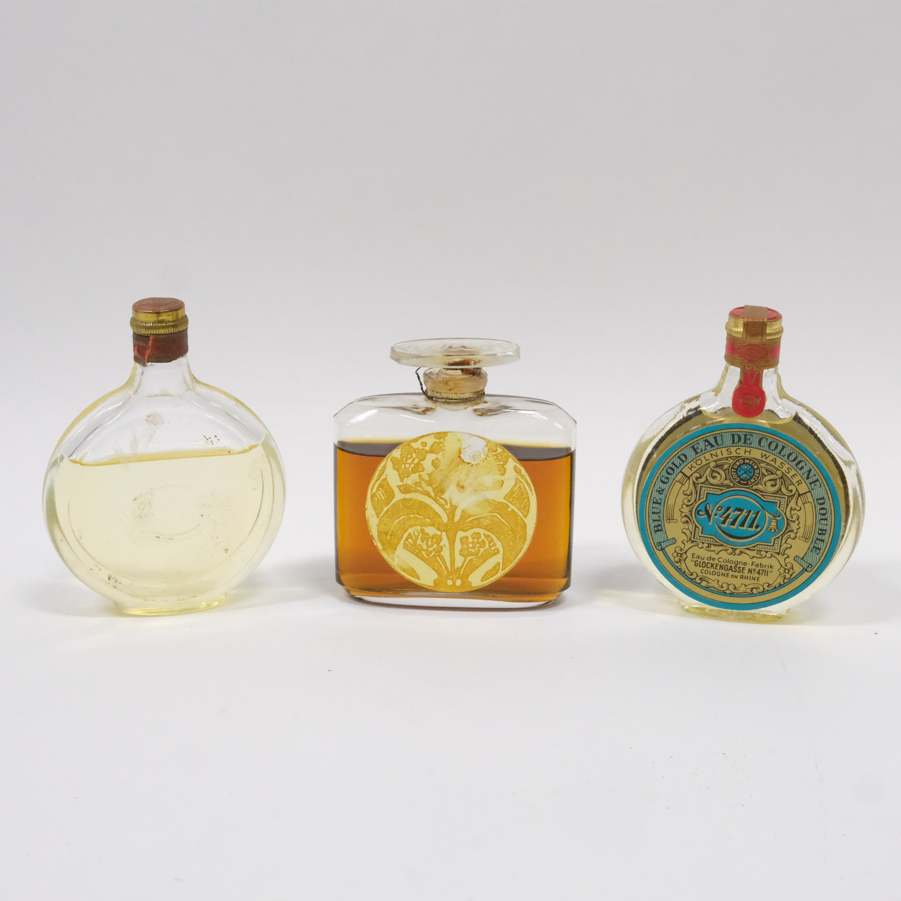 4374490. PARFYMFLASKOR, TRE STYCKEN, 1900-TALETS FÖRSTA HÄLFT.