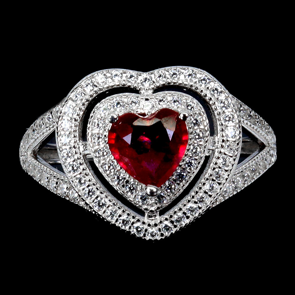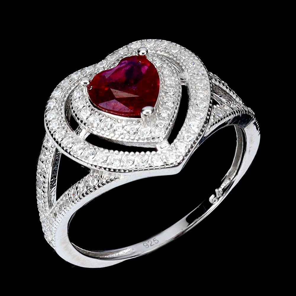 4374860. HJÄRTA RUBIN SILVERRING.