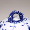 Dekor i underglasyrblått. Hänklar i form av sjöhästar.