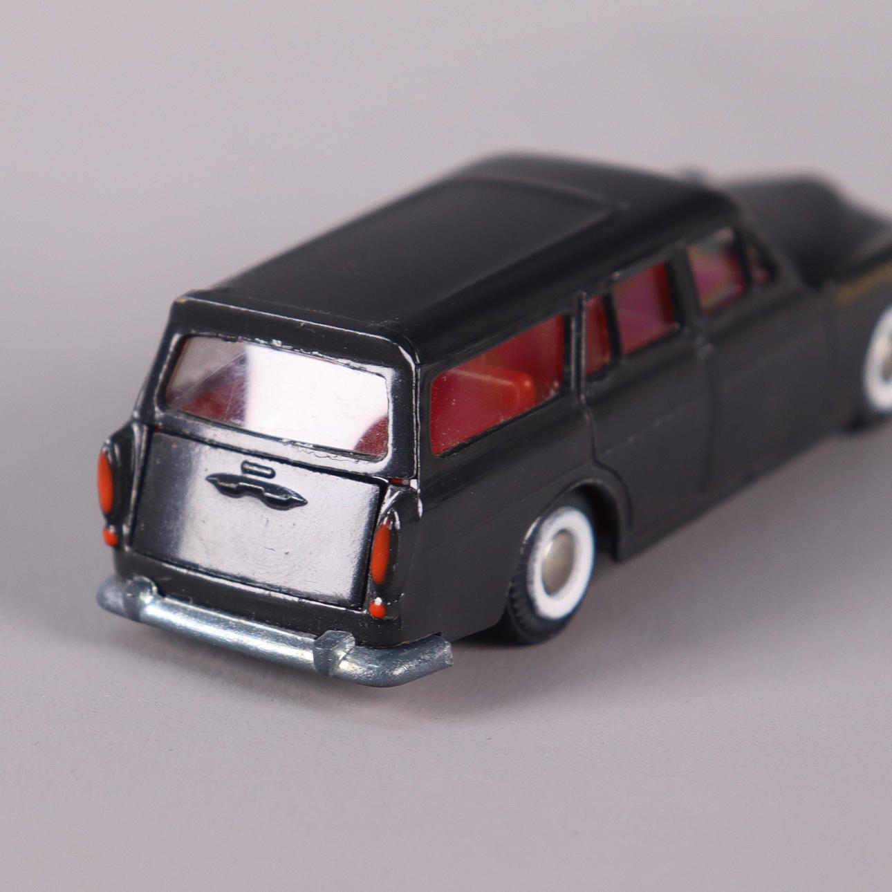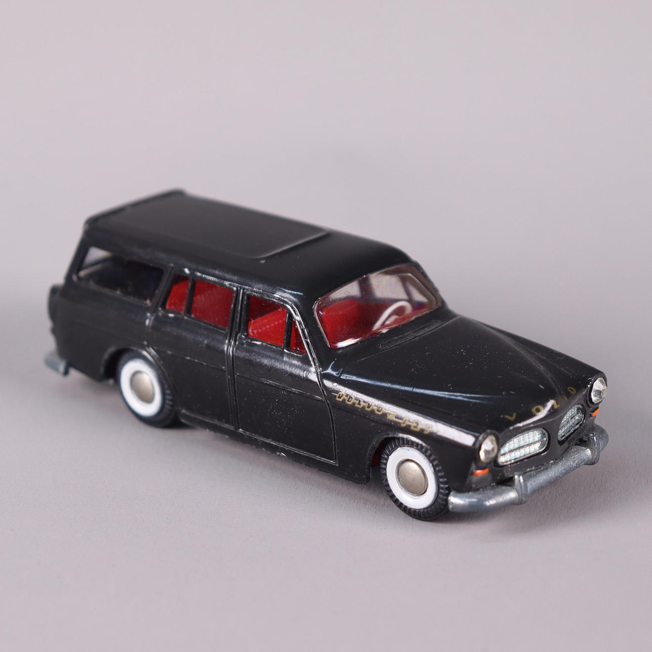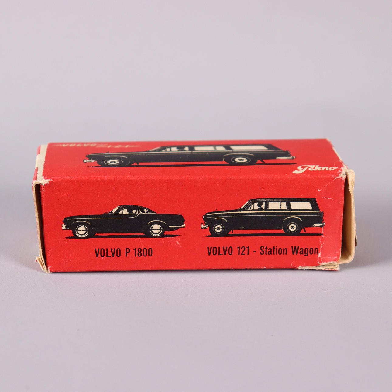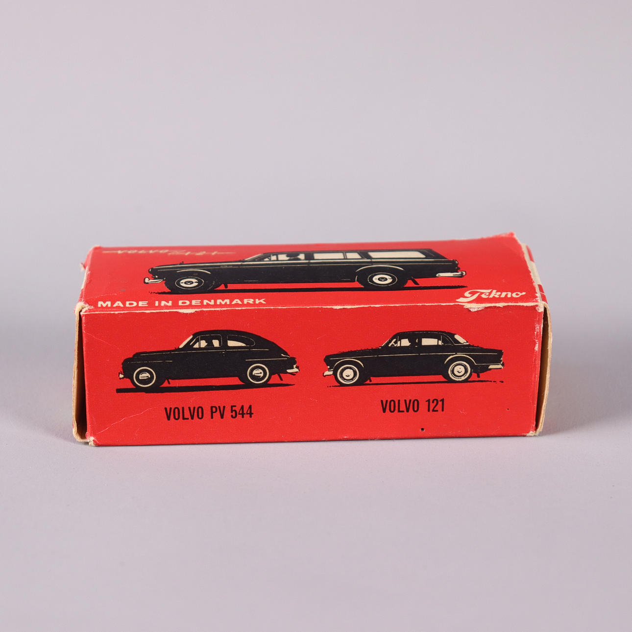 Längd 10,3 cm. Originalkartong, röd, 10,5 x 4 x 3,5 cm. Öppningsbar baklucka. Underrede: "Volvo 221 - 830". Skala 1:43.