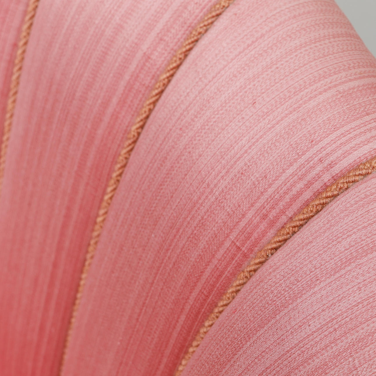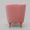 Rosa textilklädsel med möbelsnodd. Bredd ca 64 cm, sitthöjd ca 38 cm, rygghöjd ca 78 cm.