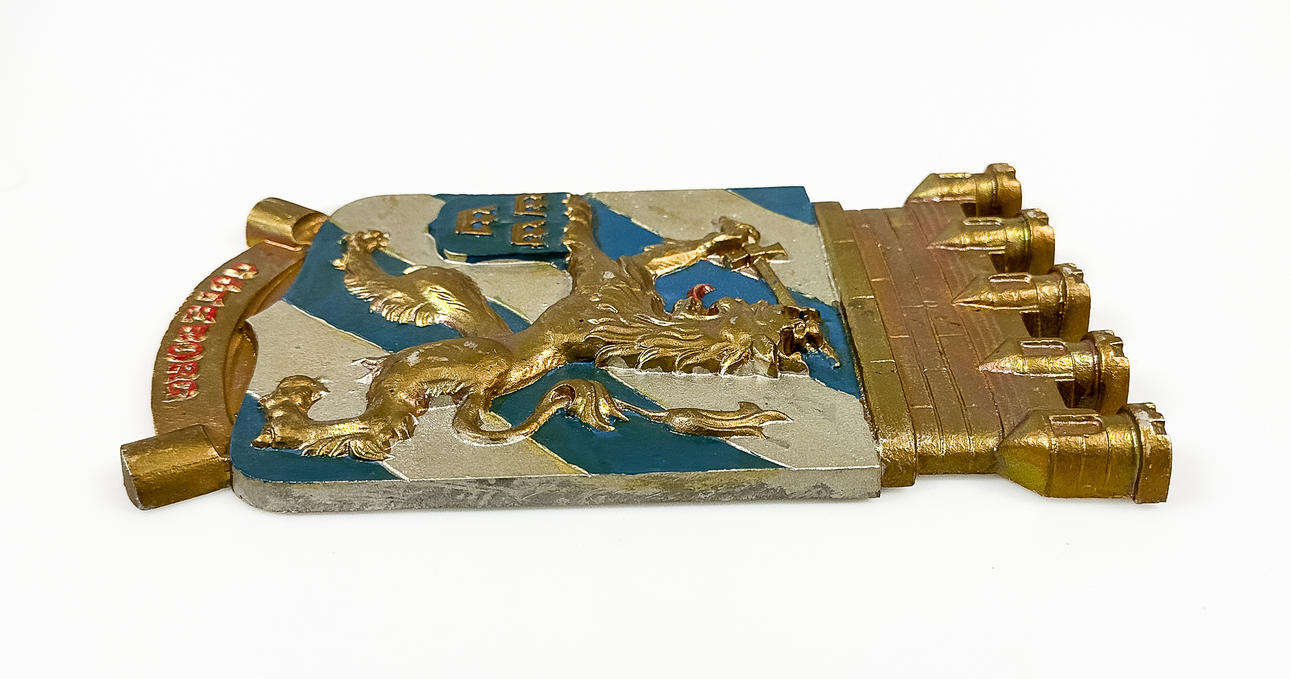 STADSVAPENSKÖLD, bemålad metall, "Göteborg".