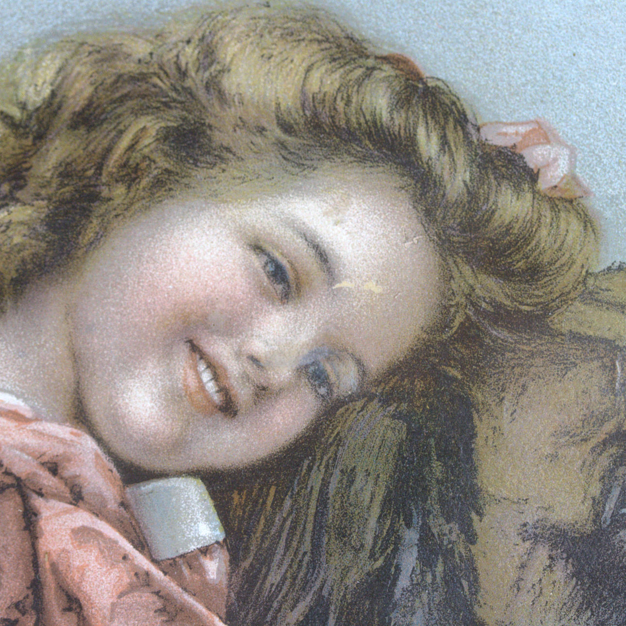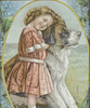 OIDENTIFIERAD KONSTNÄR. Tryck, flicka med Sankt Bernhard, 1900-tal.