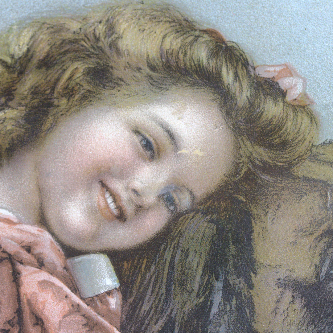 4382410. OIDENTIFIERAD KONSTNÄR. Tryck, flicka med Sankt Bernhard, 1900-tal.