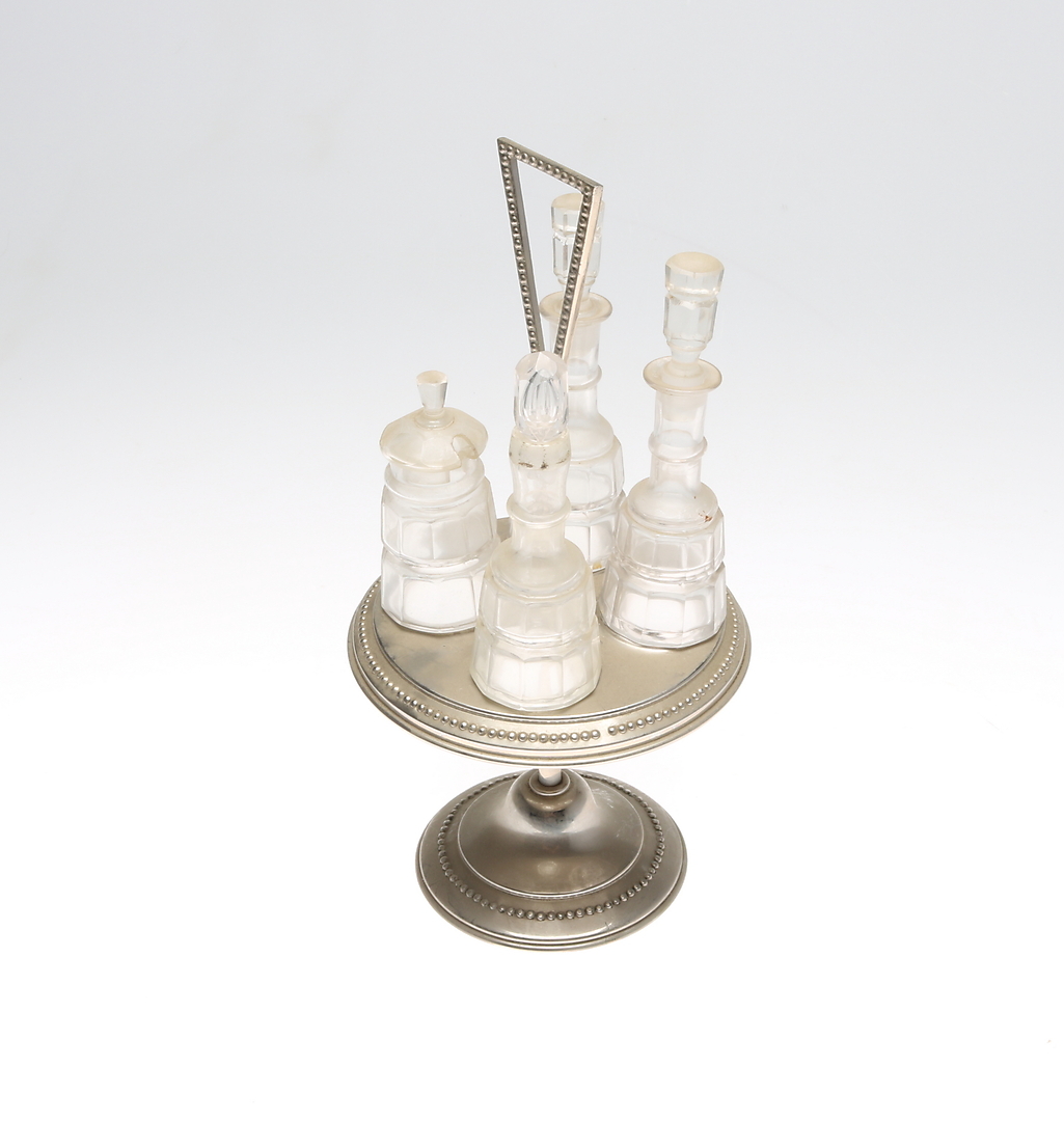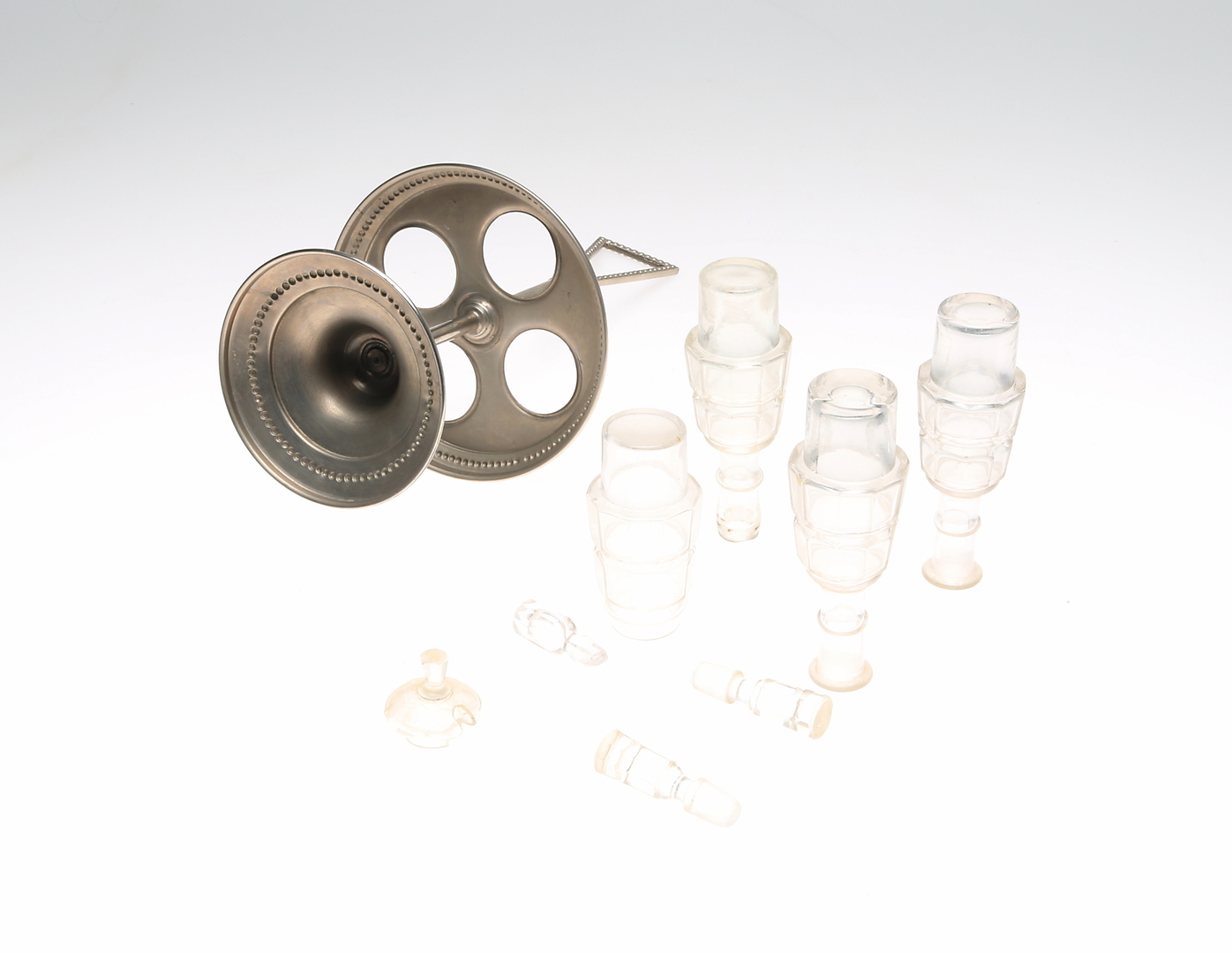 438258. BORDSSTÄLL, metall och glas.