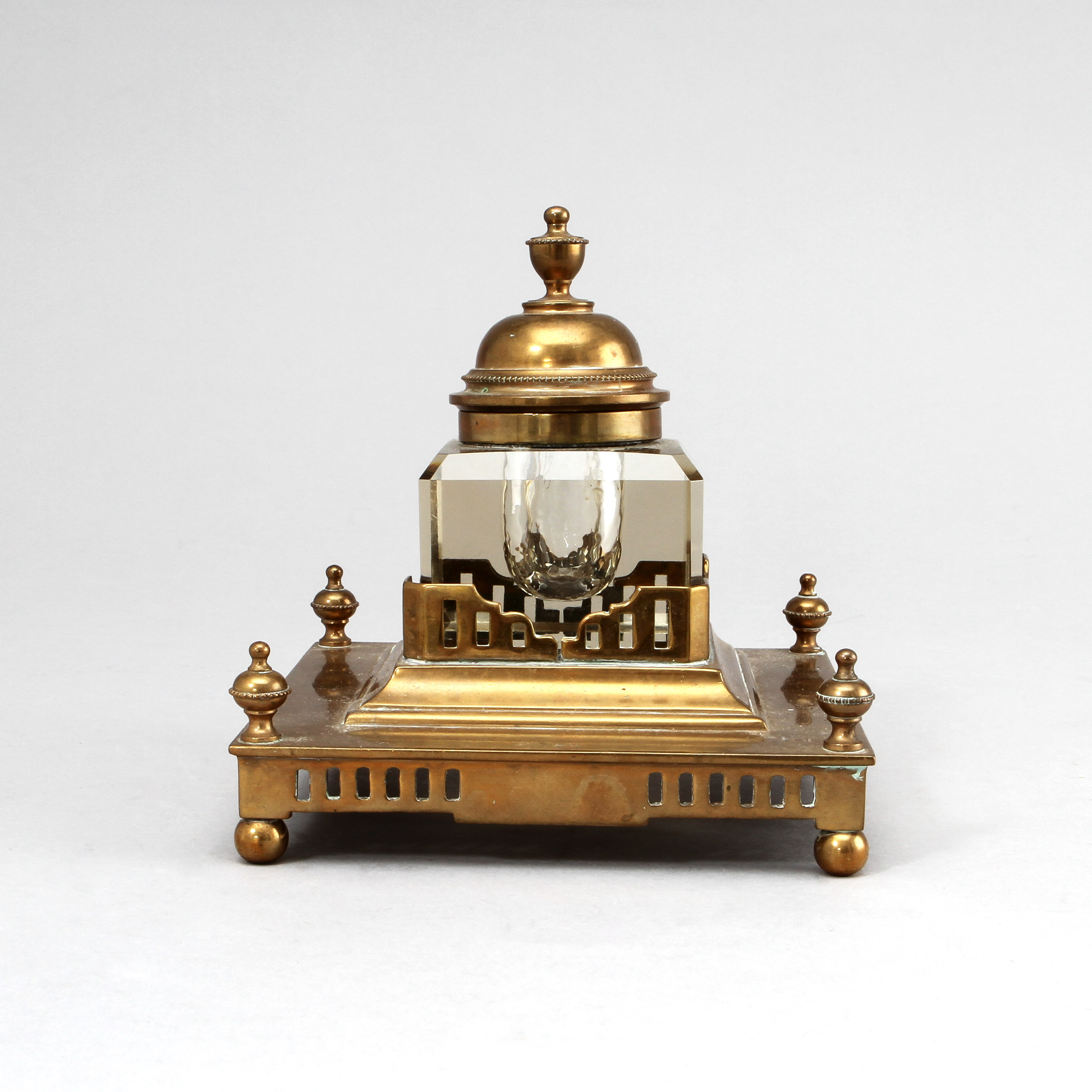 438537. BLÄCKHORN, glas samt mässing, EOS Jönköping.