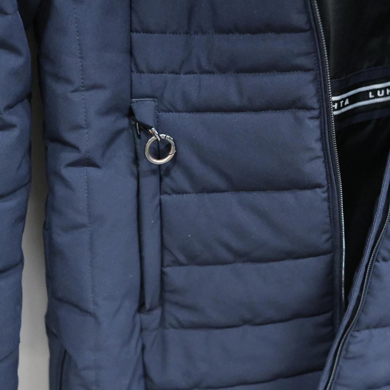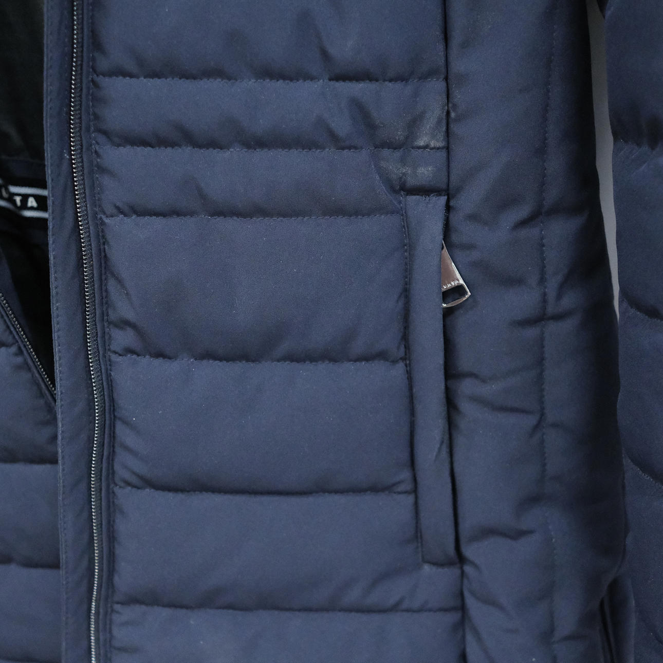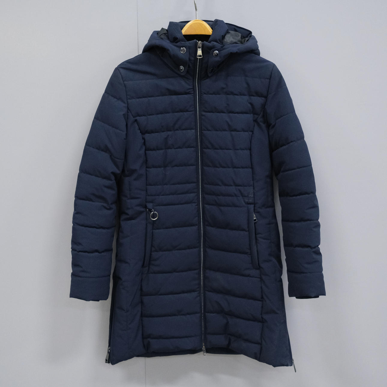 Marinblå jacka storlek 38, längd 82cm.