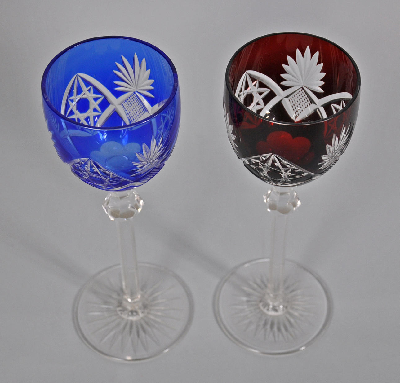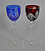 6 olikfärgade, högstammade romare, med prydnads gravyr, h. 22cm