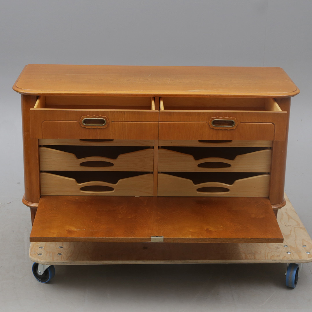 4388981. KLAFFBYRÅSCHATULL, mahogny, 1940-tal.
