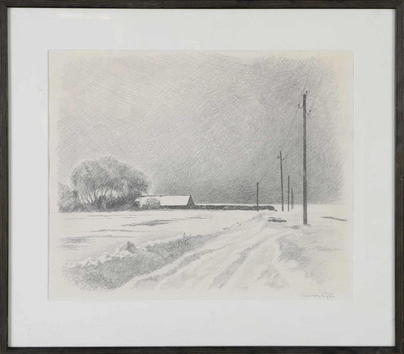4389362. GUNNAR LYTH. Vinterlandskap, teckning, signerad.