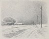 GUNNAR LYTH. Vinterlandskap, teckning, signerad.