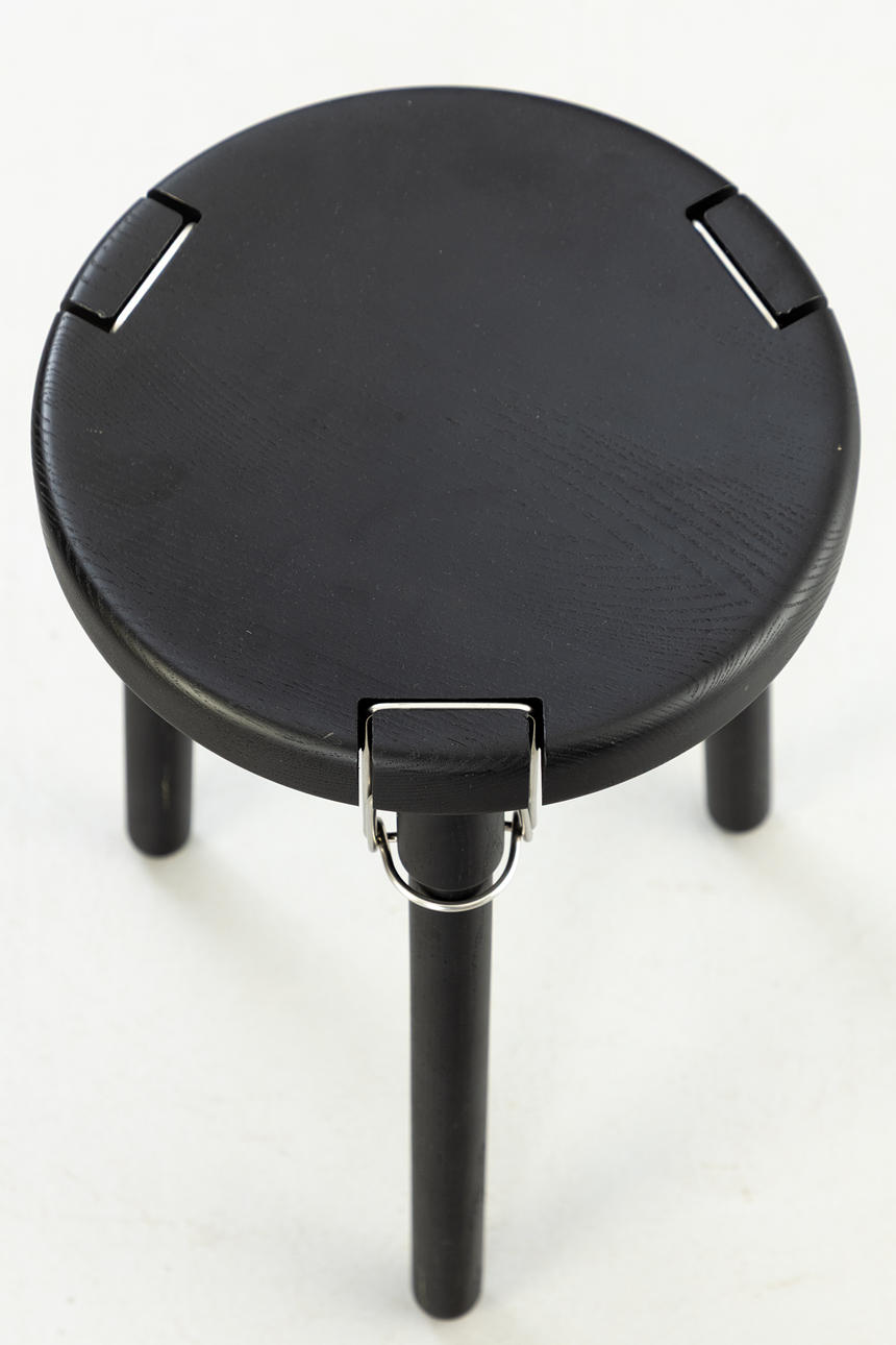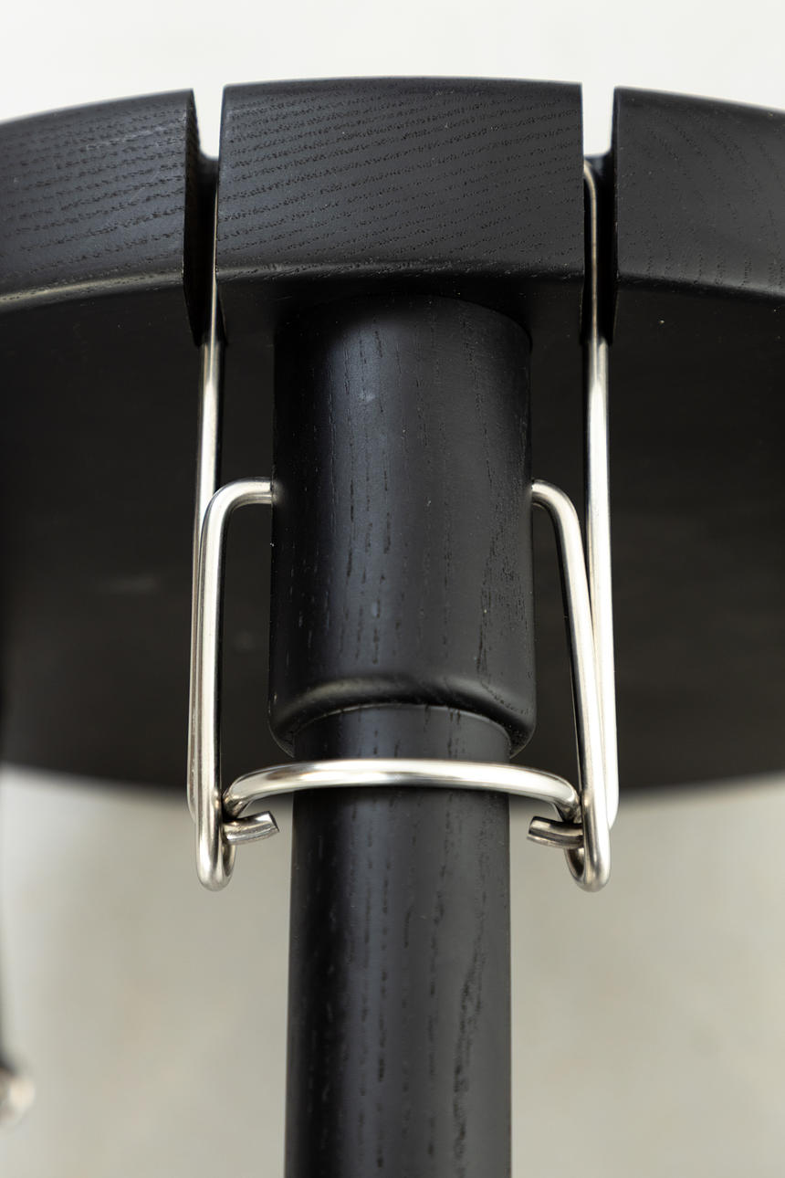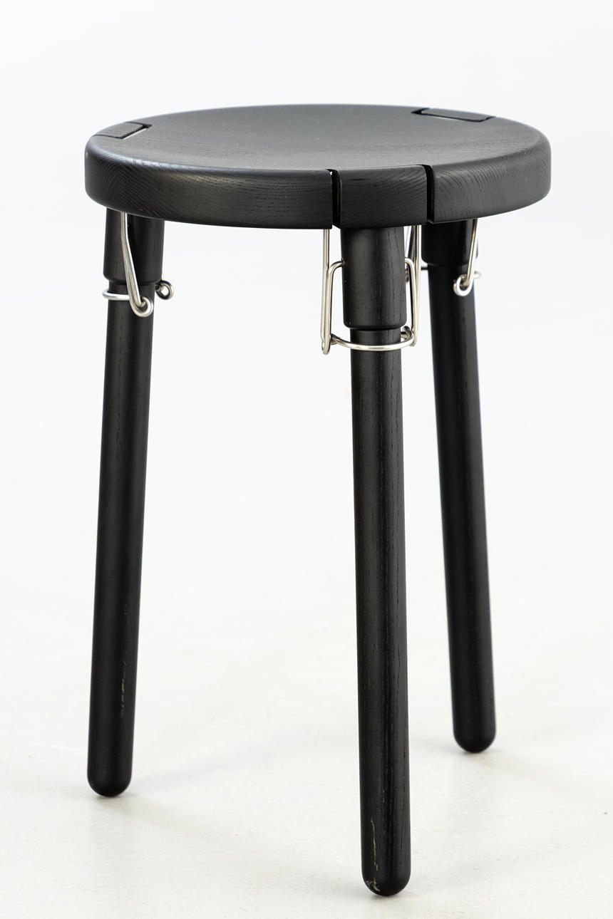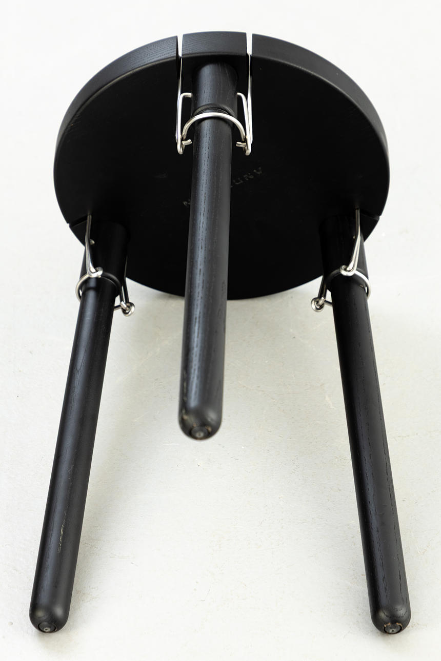 Trebenad hocker Svartbetsad askträram, säkerhetsklämma i stål. Vikbara ben