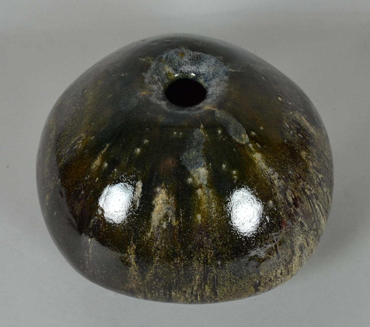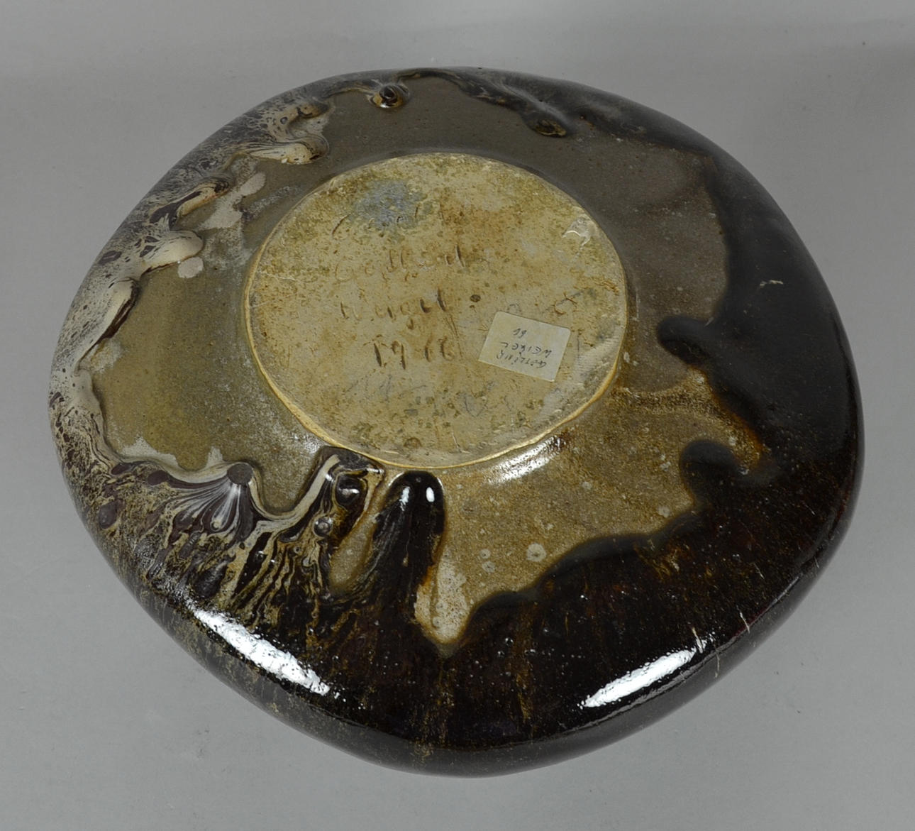 Stengods, glaserat och signerat.