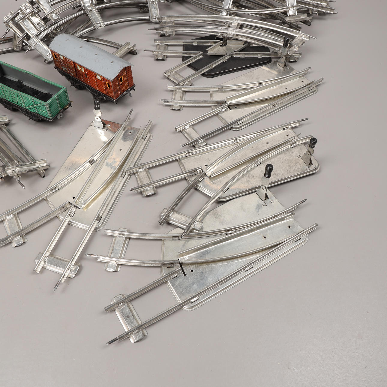 Räls och två vagnar.
