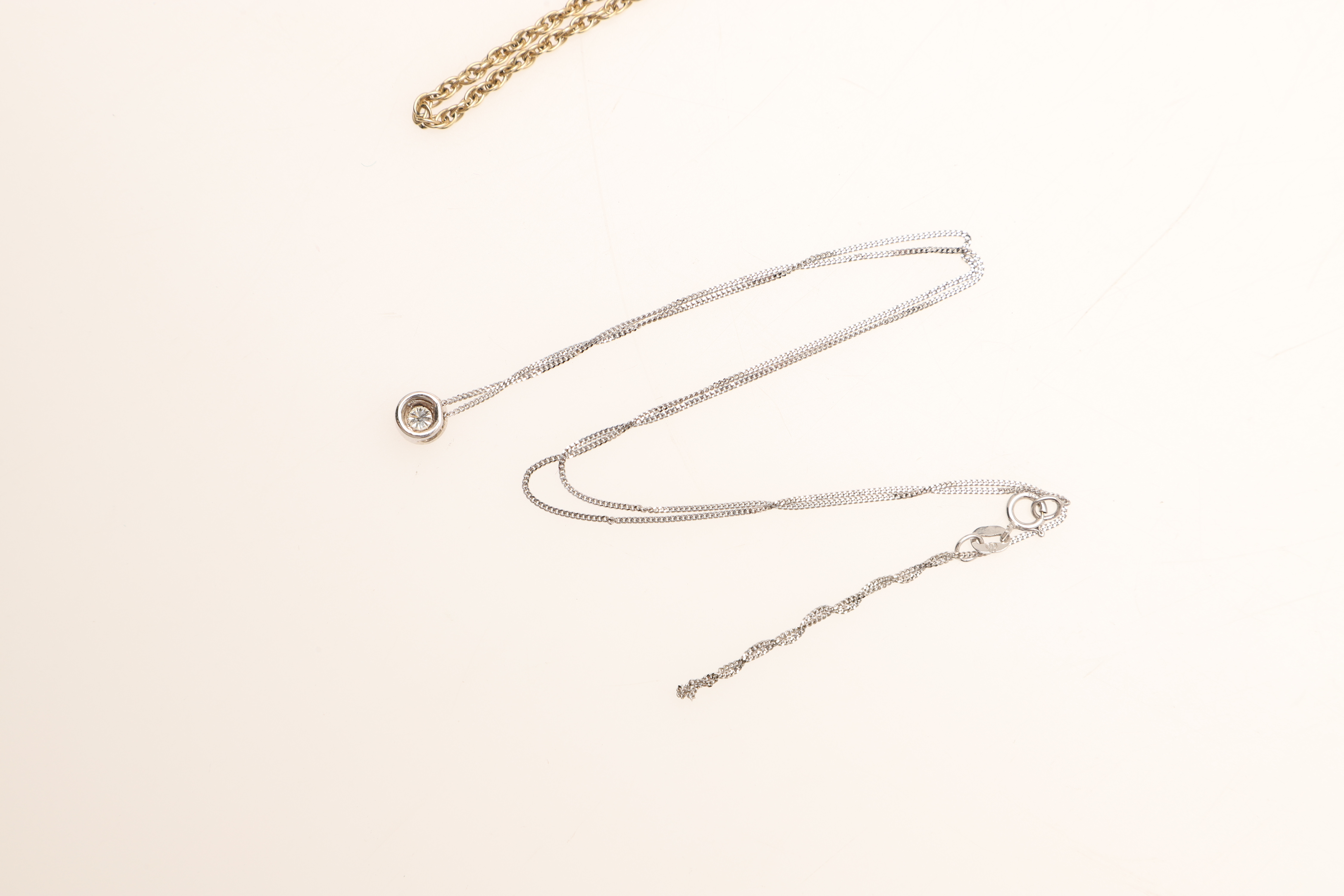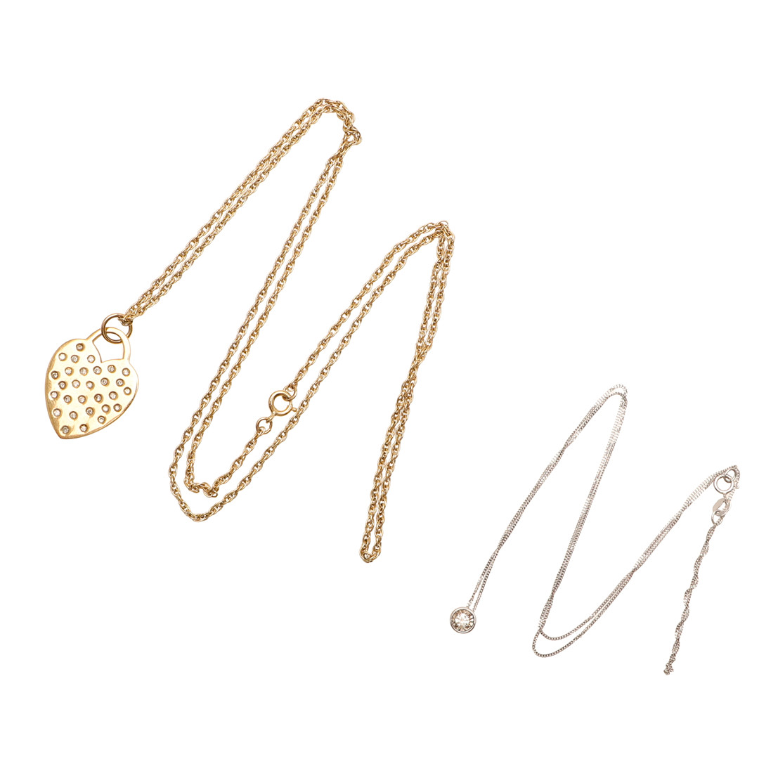 4396375. TVÅ 9CT GULD OCH DIAMANT HÄNGEN.