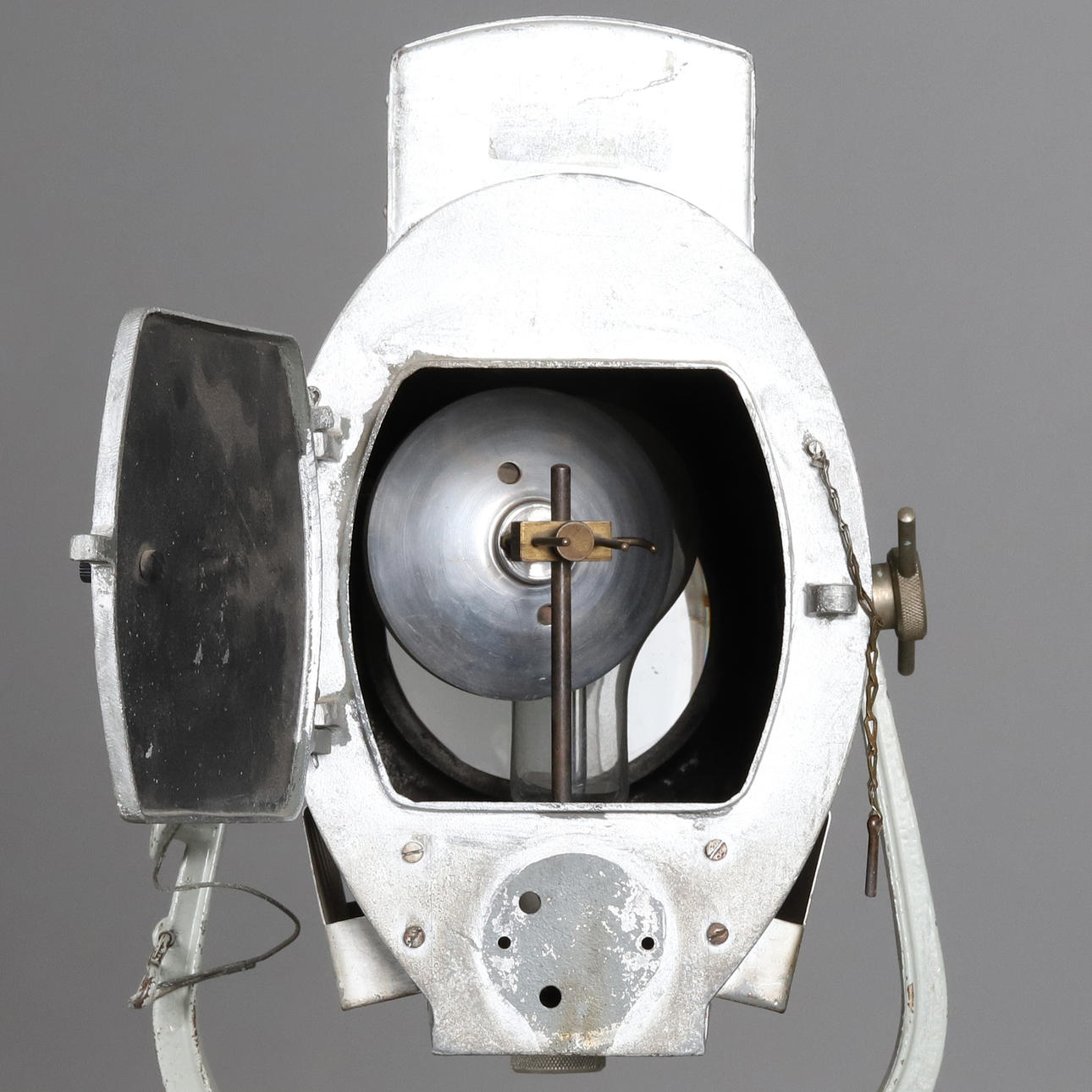 Studiolampa med justerbar höjd och riktning.