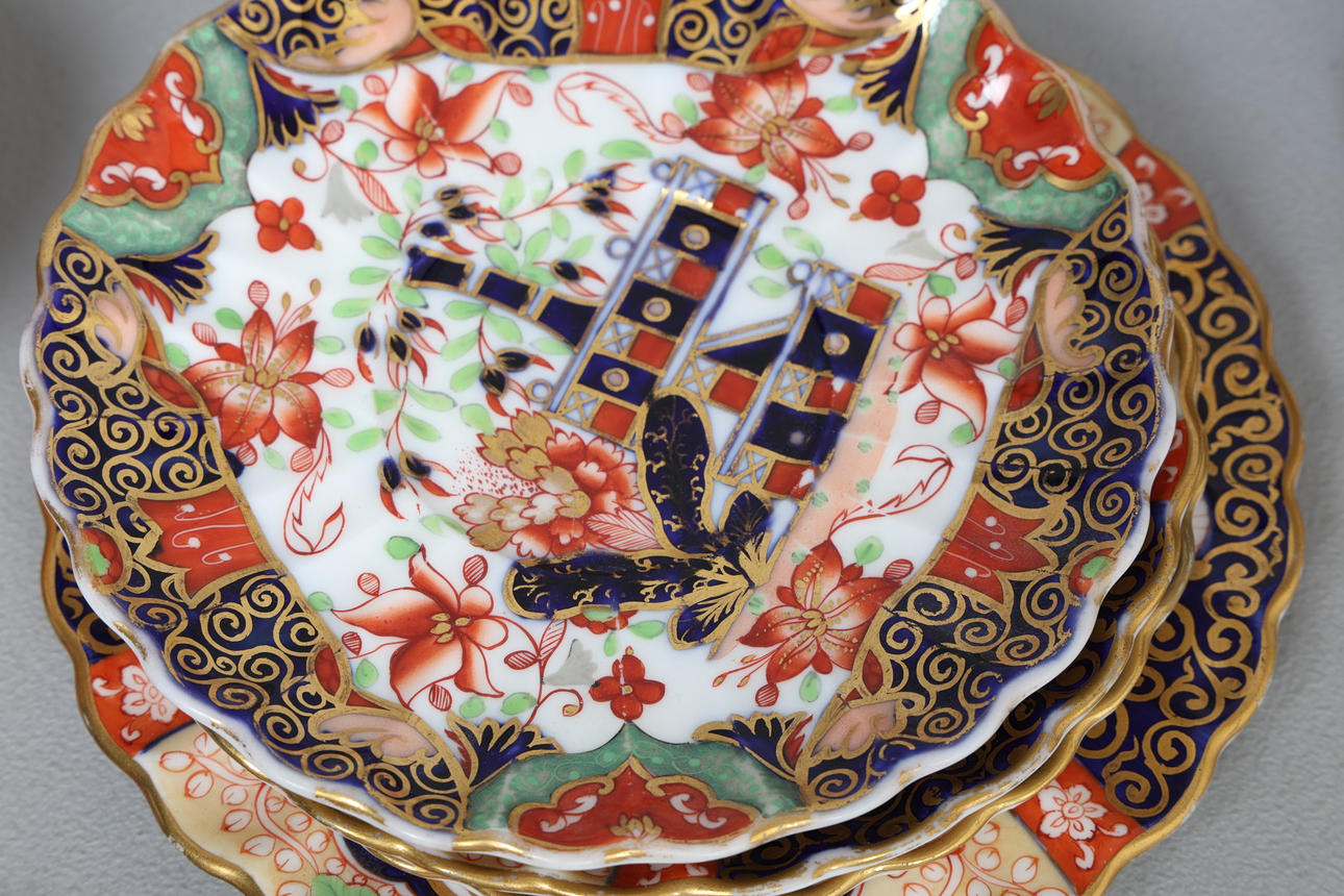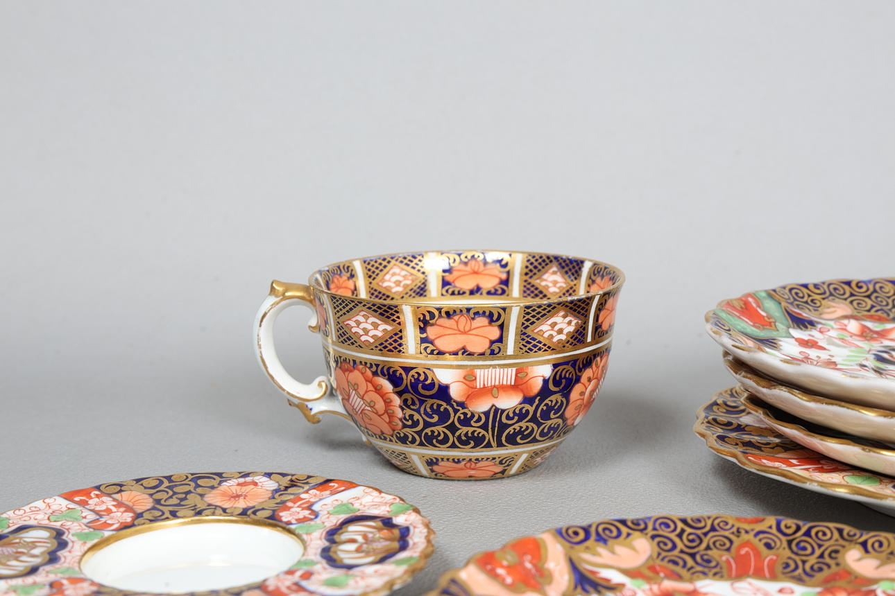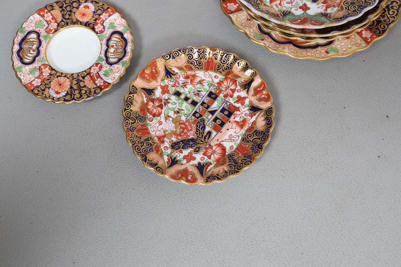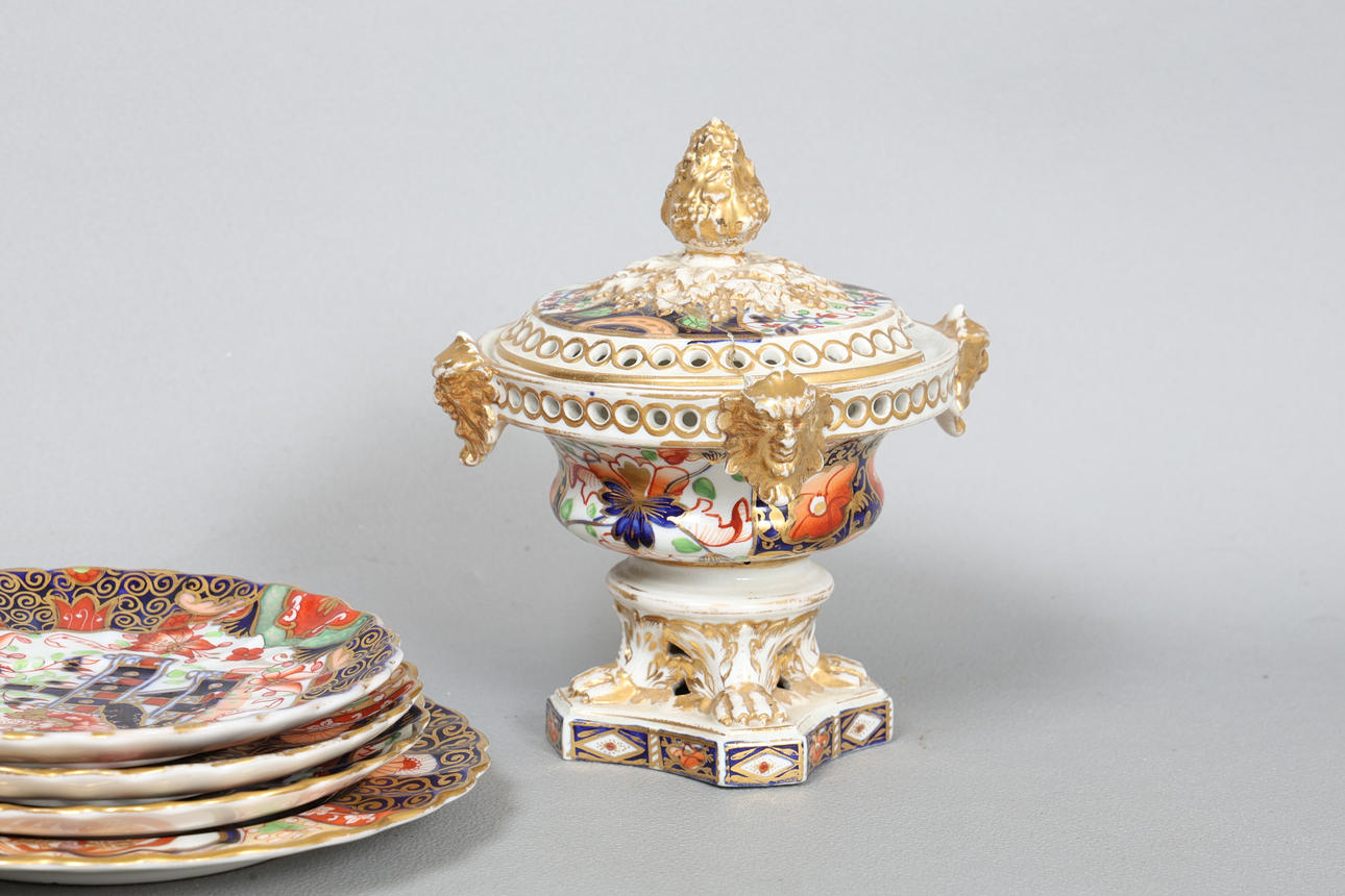 Att inkludera en Crown Derby Pot Pourri, tallrikar och en kopp, (8).