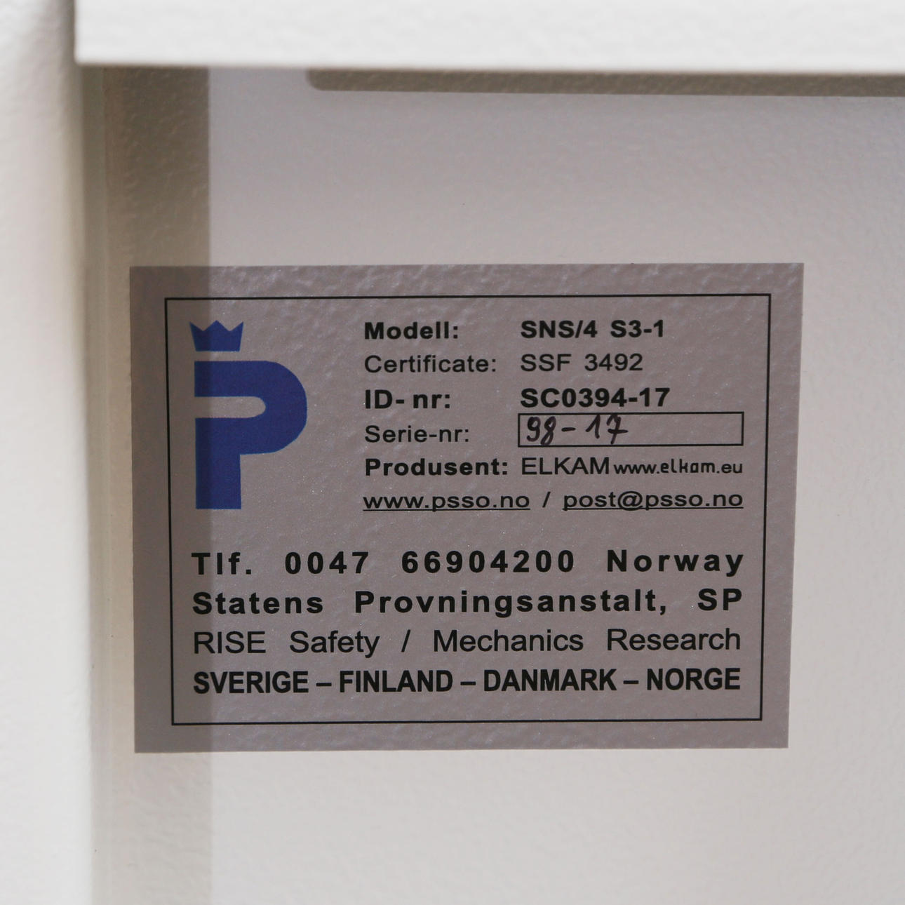 VAPENSKÅP/SÄKERHETSSKÅP PSSO SNS/4 S3-1.