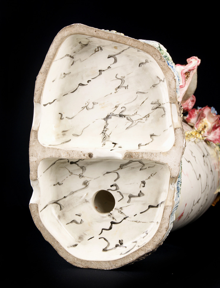 440773. ITALIENISCHE MAJOLIKA-KERAMIK. Golvvas med helt plastisk kvinnlig figur & blommor.