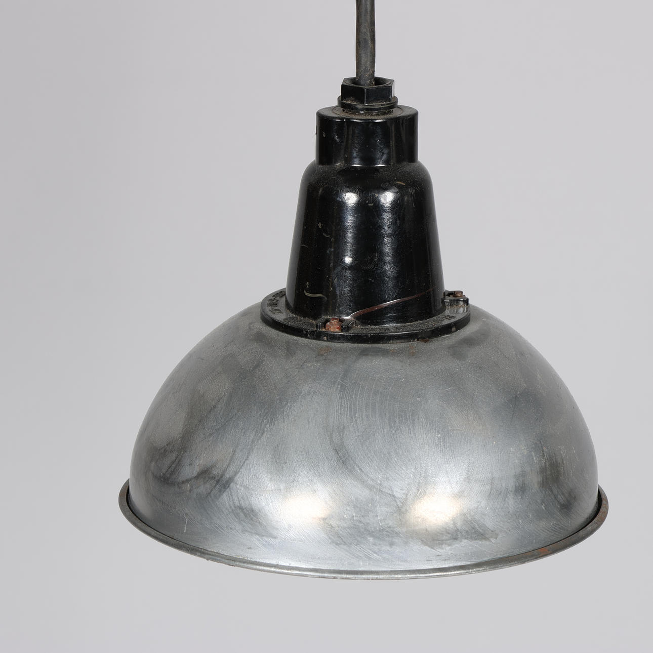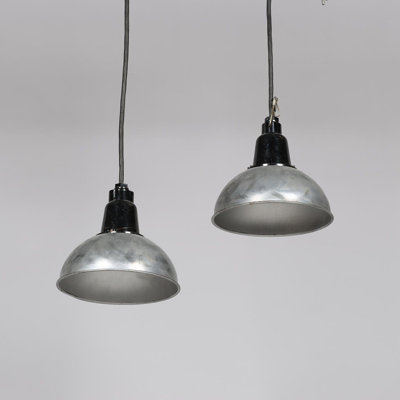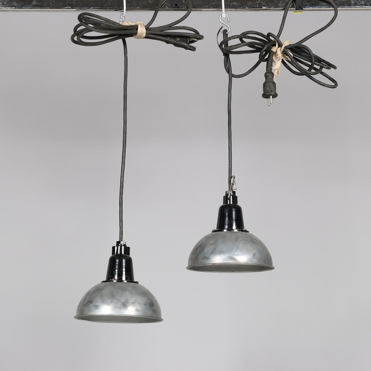 INDUSTRIPENDLAR, ett par, Ryssland, 1900-talets andra hälft, med bakelithylsa och gummikabel. Höjd utan sladd med upphängning 27 cm, Ø 21 cm.