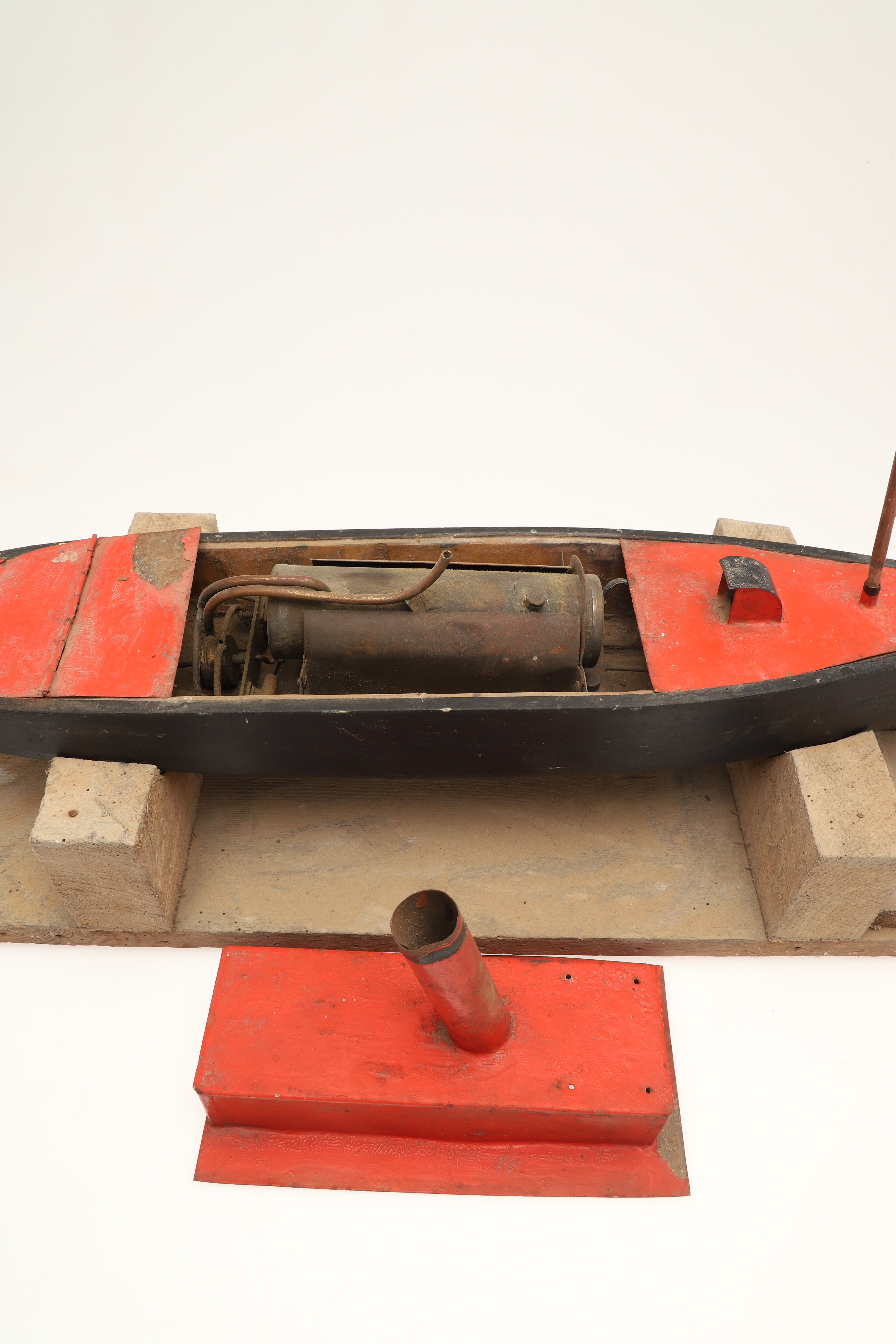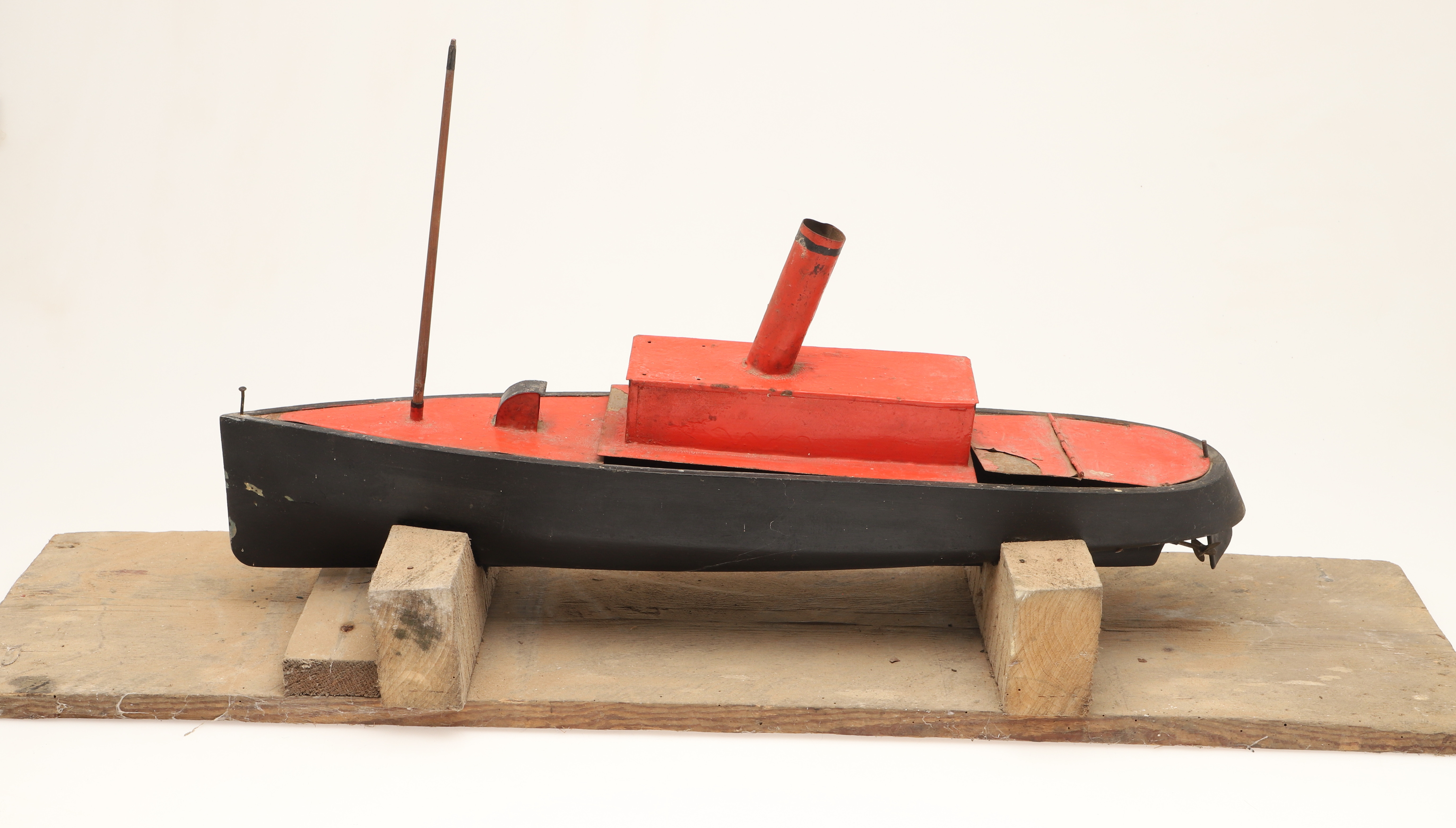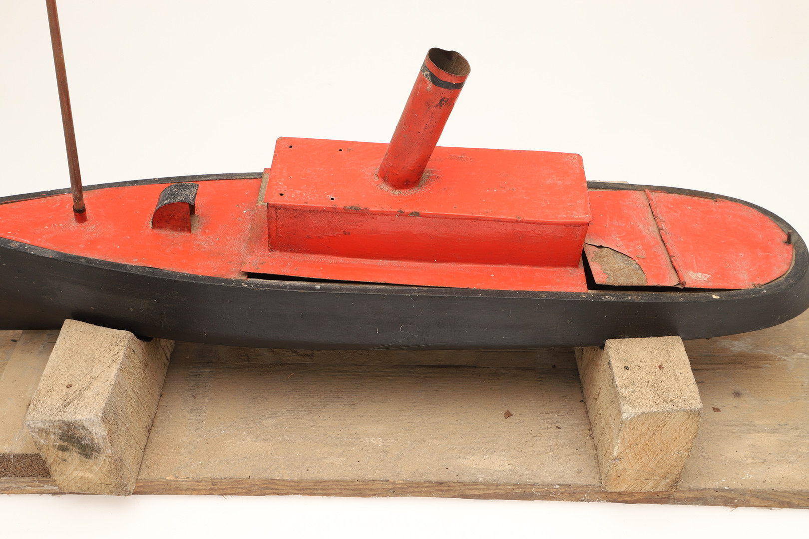 4408650. REPBYGGD TRÄ- & TENNPLÅTMODELL BÅT - MOTOR.