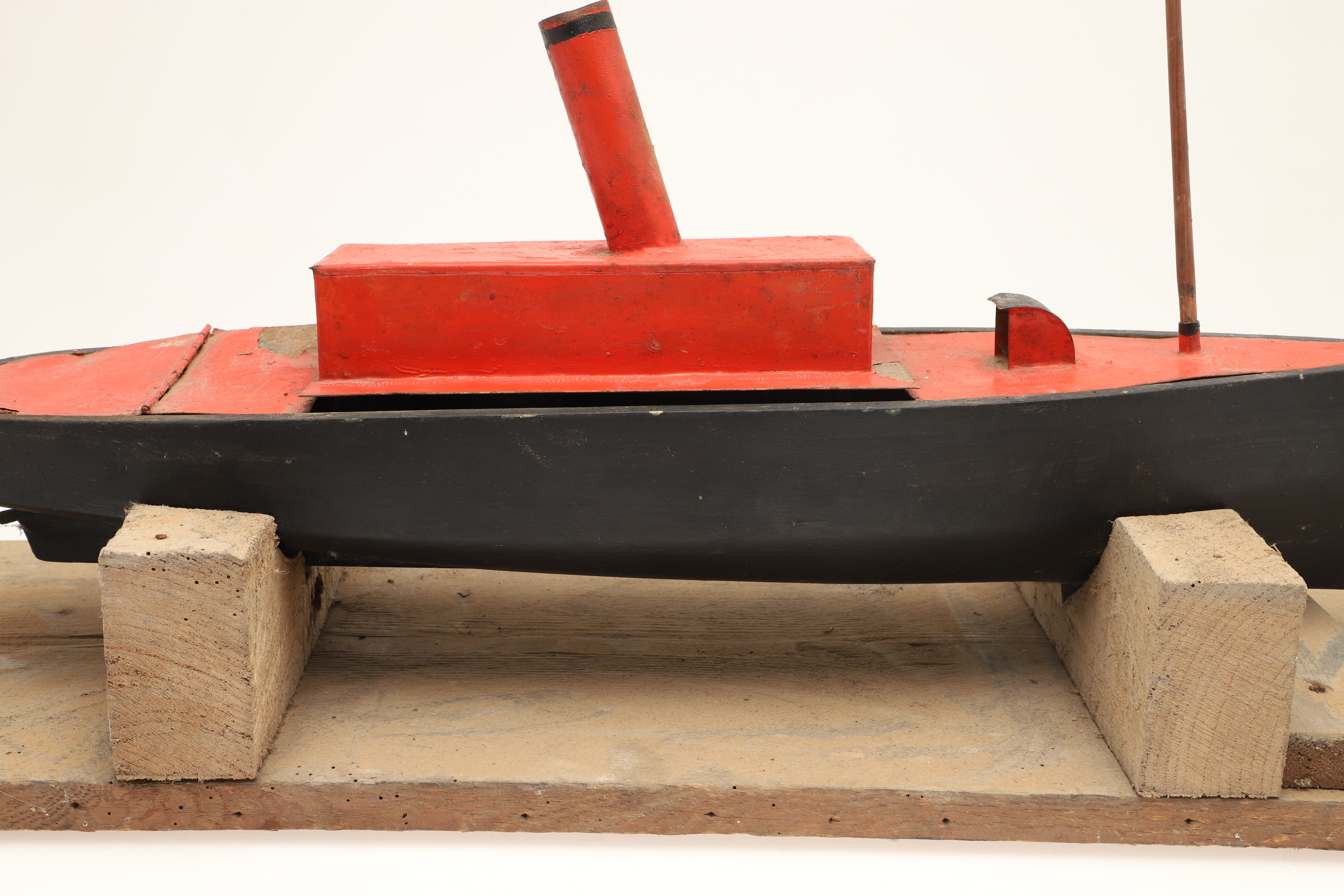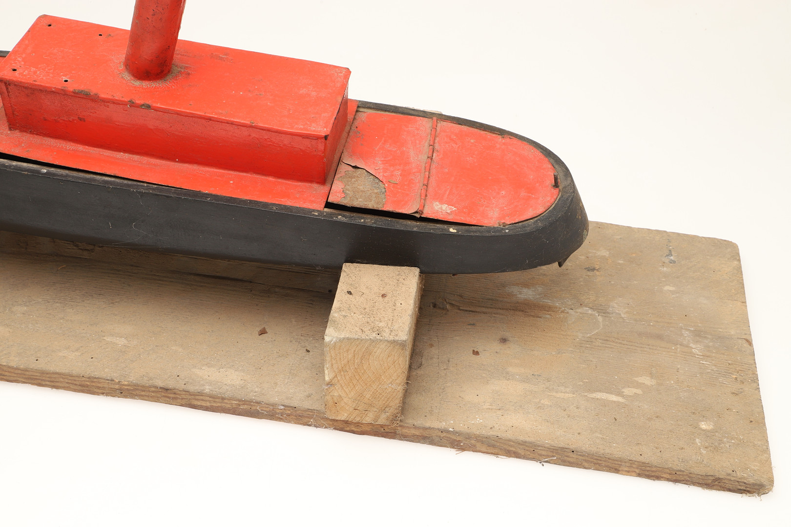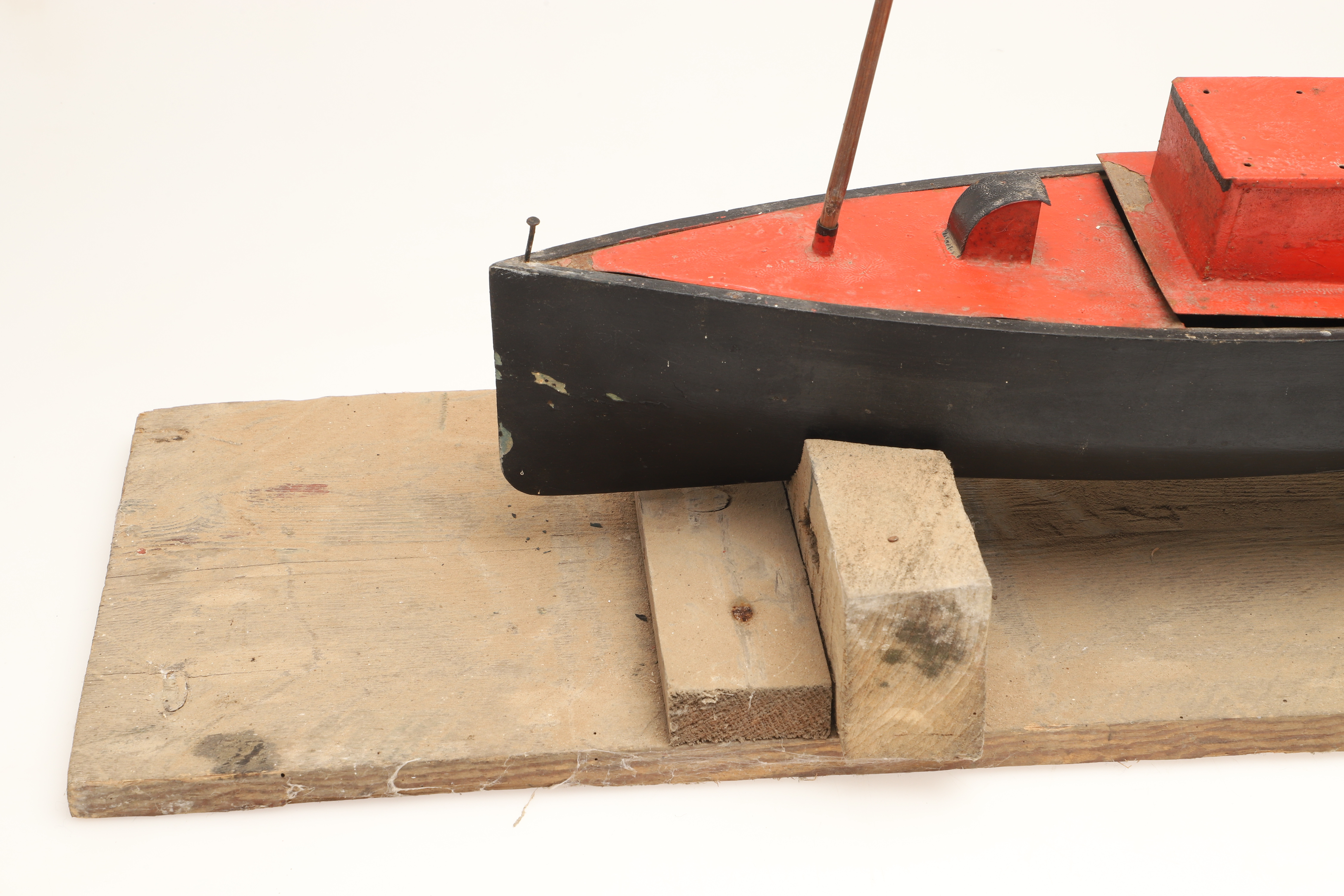 4408650. REPBYGGD TRÄ- & TENNPLÅTMODELL BÅT - MOTOR.