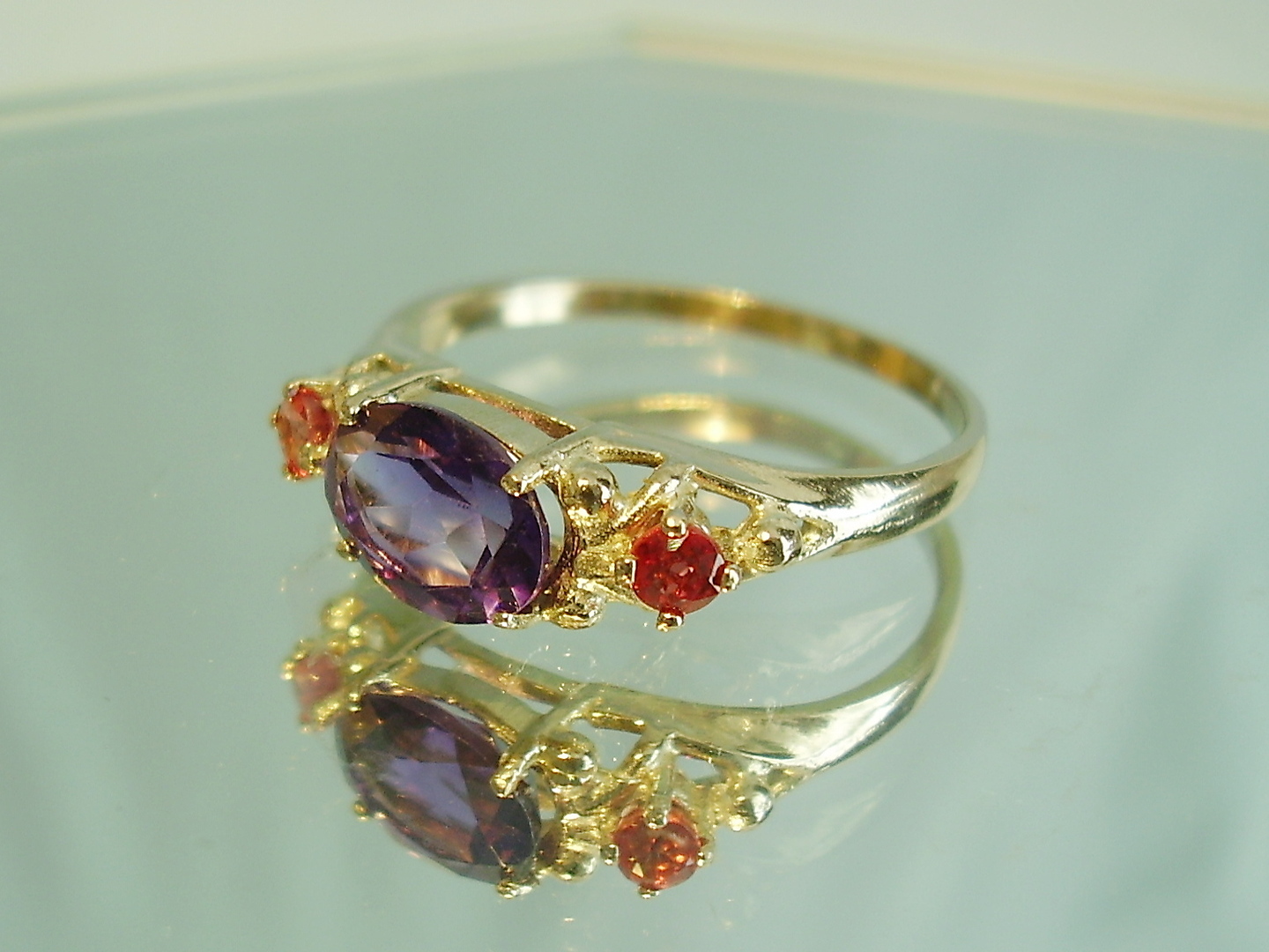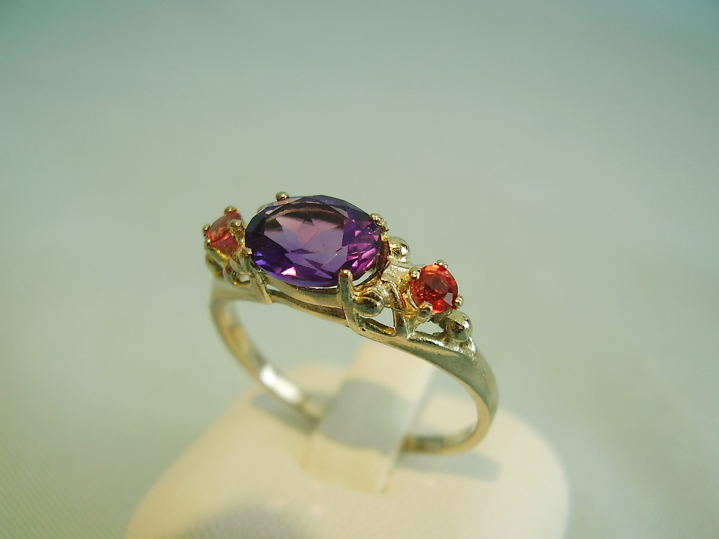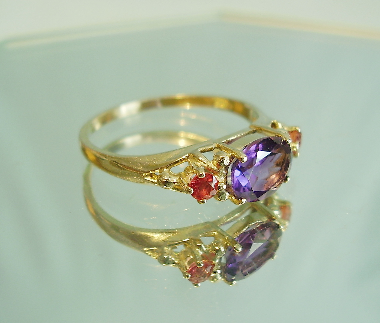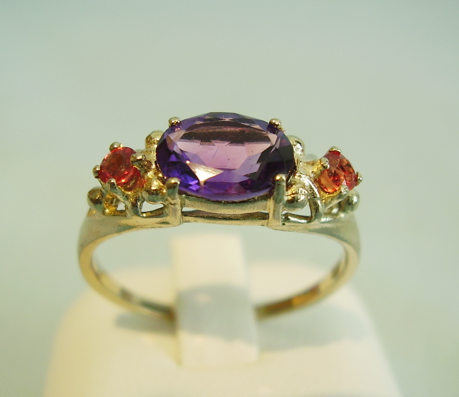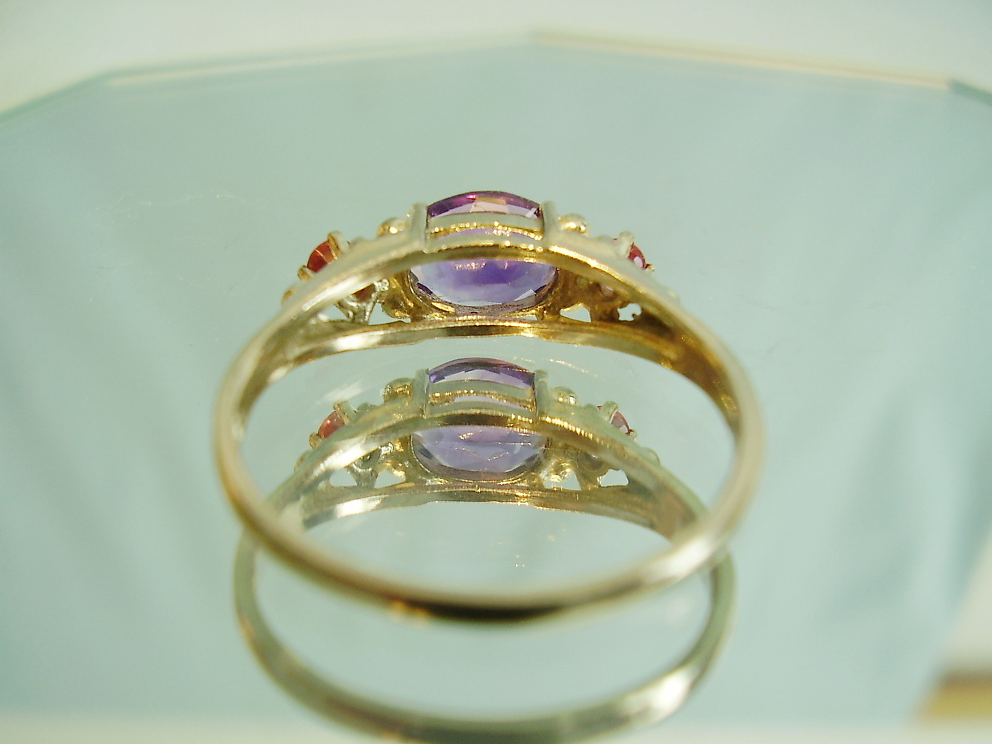 441123. AMETIST/RUBIN-RING, vitguld 585.