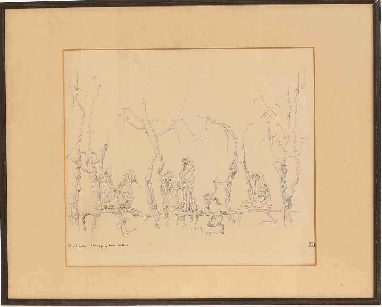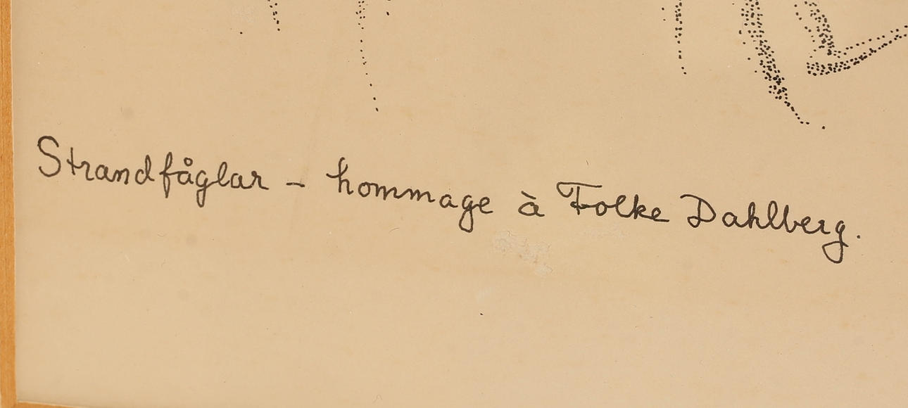 4412798. OIDENTIFIERAD KONSTNÄR, tuschteckning, "Strandfåglar", monogramsignerad.