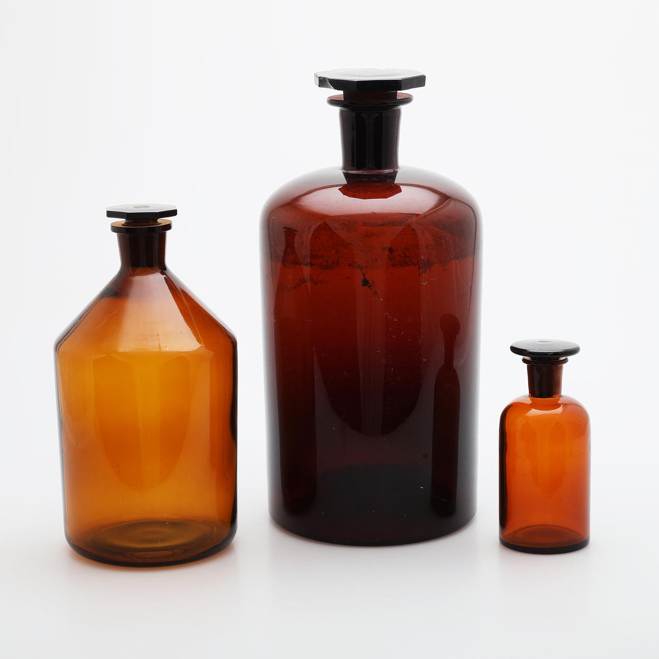 4412961. APOTEKSFLASKOR, 3 st, glas, 1900-talets första del.