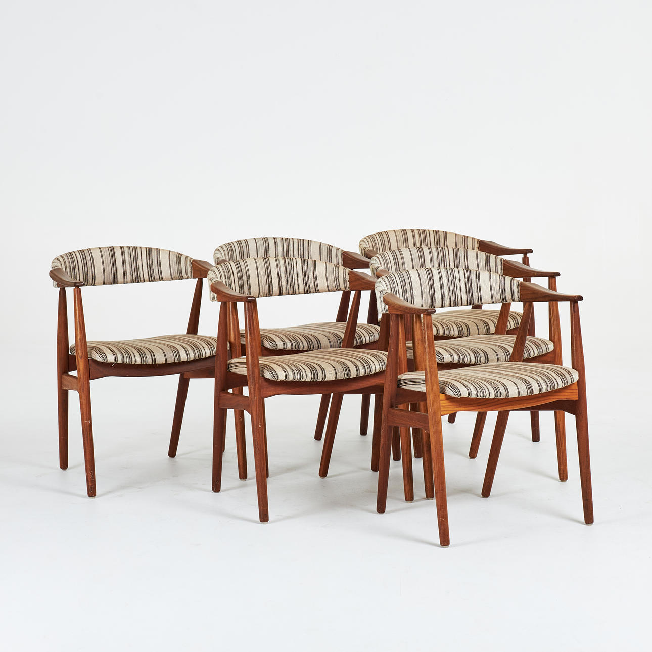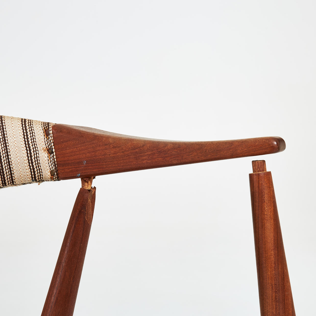 Bruks- och åldersrelaterat slitage, mindre fläckar, avslag på en stol samt lös i karm.