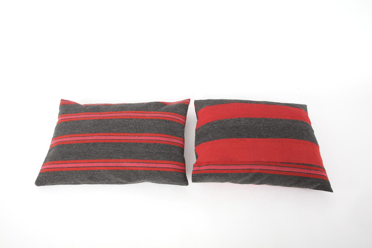 2 st kuddar och en längd. Ull med inslag av bomull. Sverige 1900-talets första hälft.