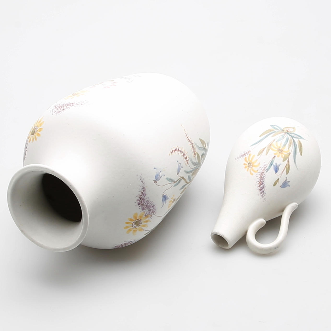 Vitglaserat gods bemålade med ängsblommor