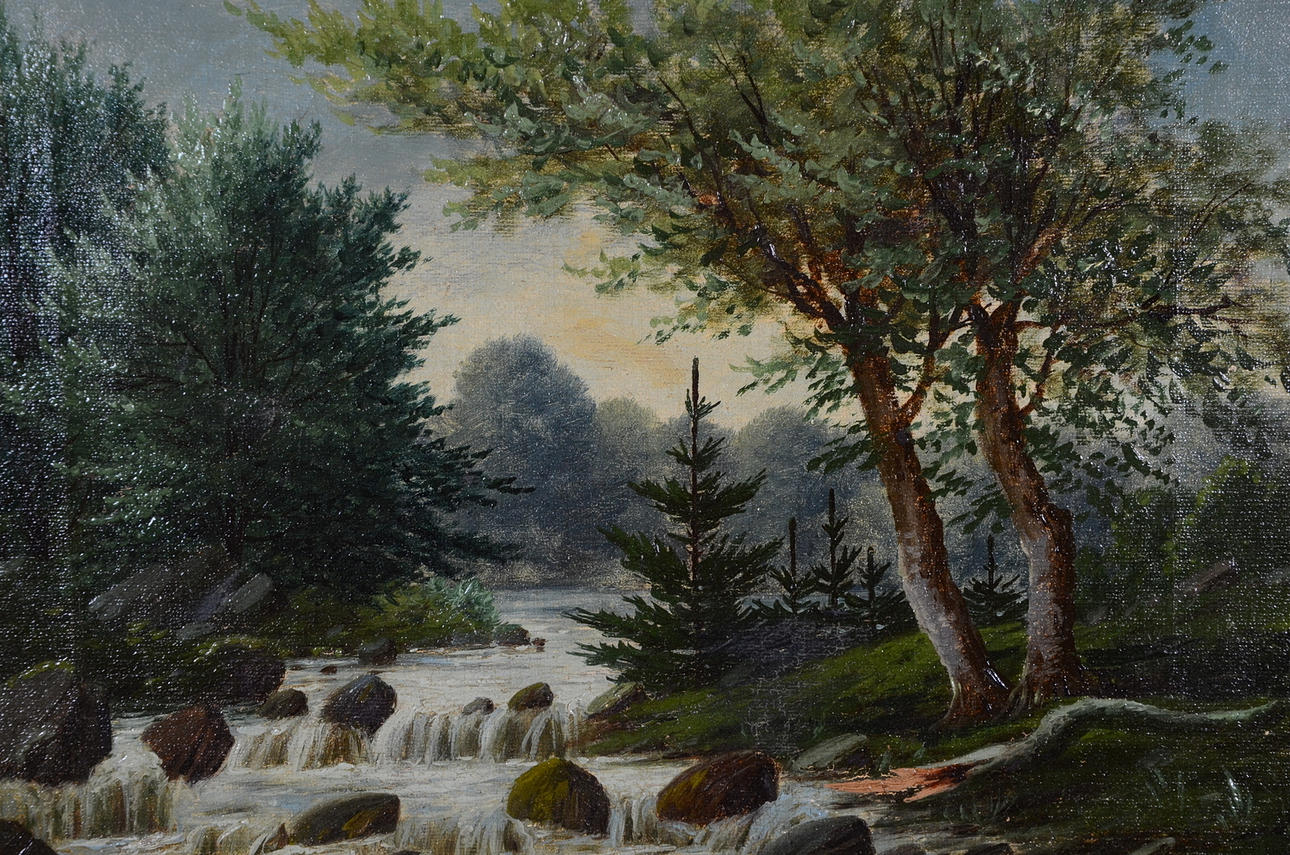 Landskap med fors. Monogramsignerad JS och daterad 1881.