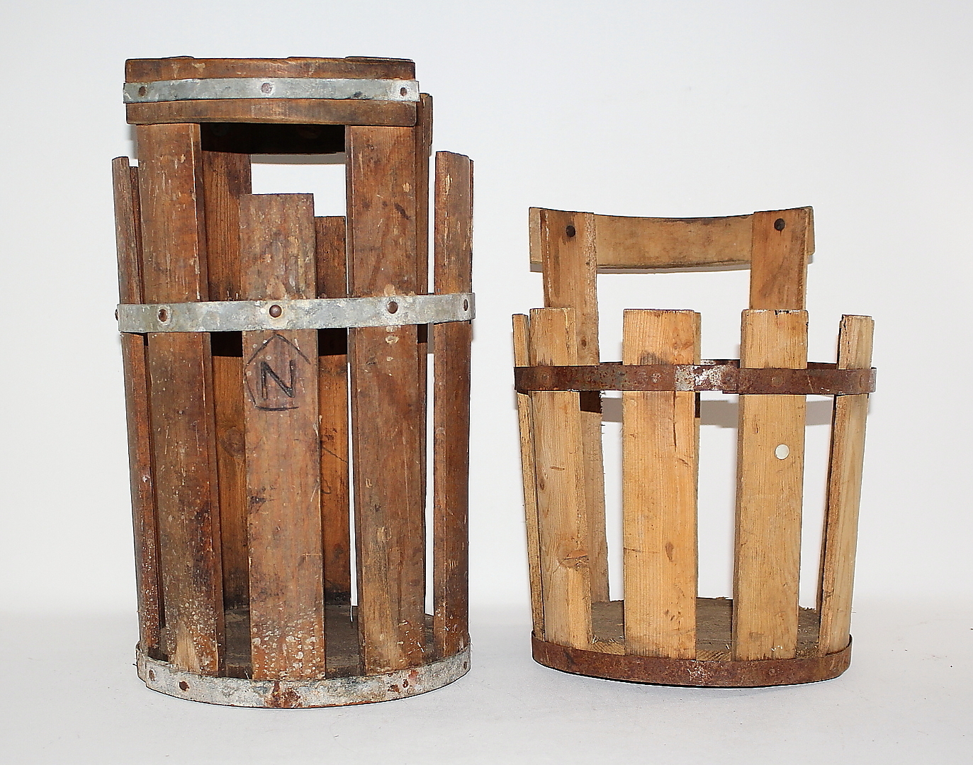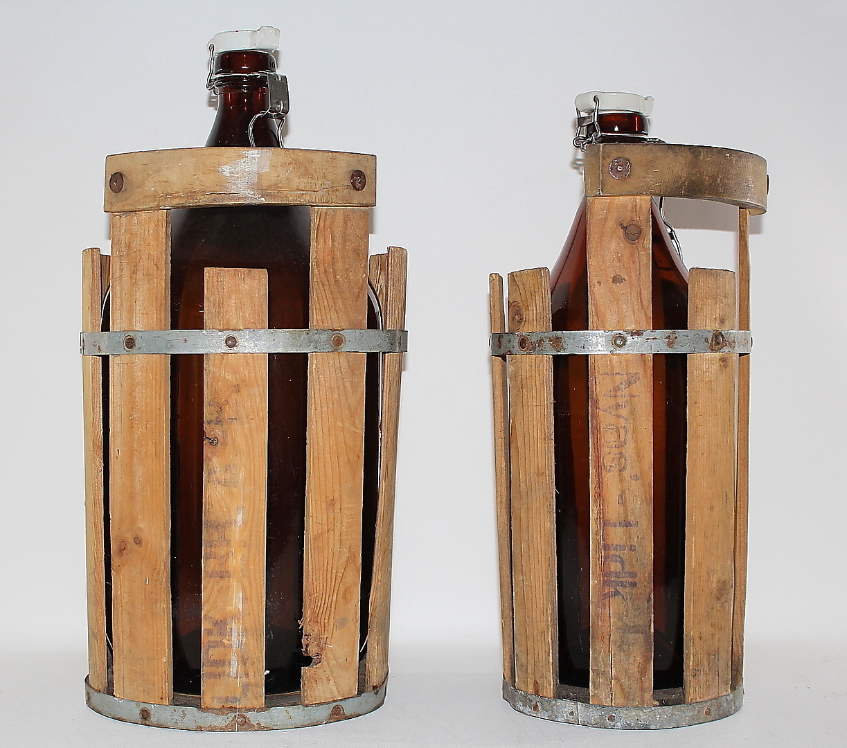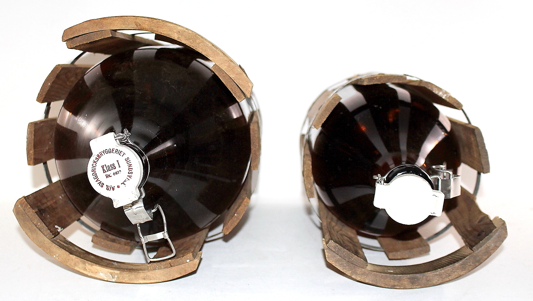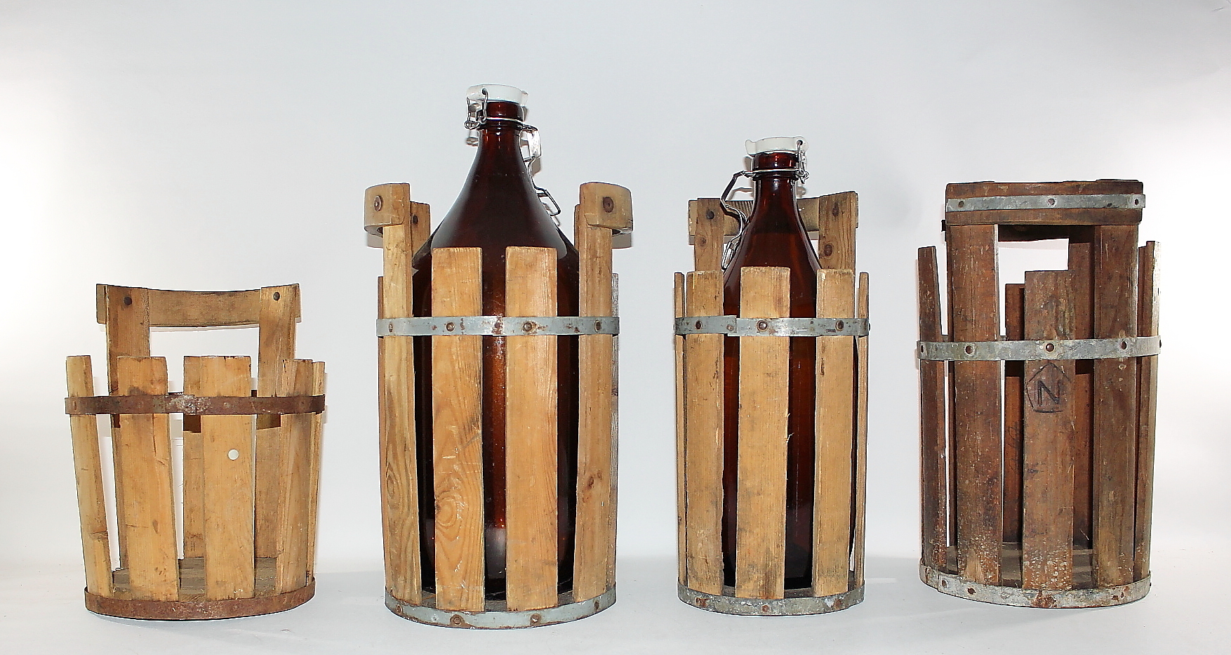 442661. FLASKOR med TRÄKORG, 2 st flaskor, 4 st träkorgar.