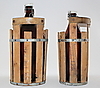 442661. FLASKOR med TRÄKORG, 2 st flaskor, 4 st träkorgar.