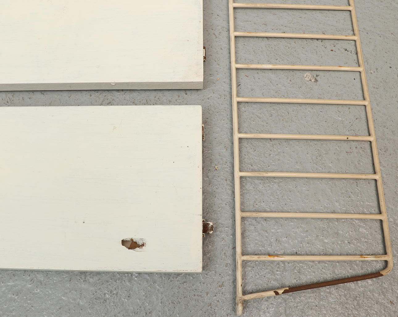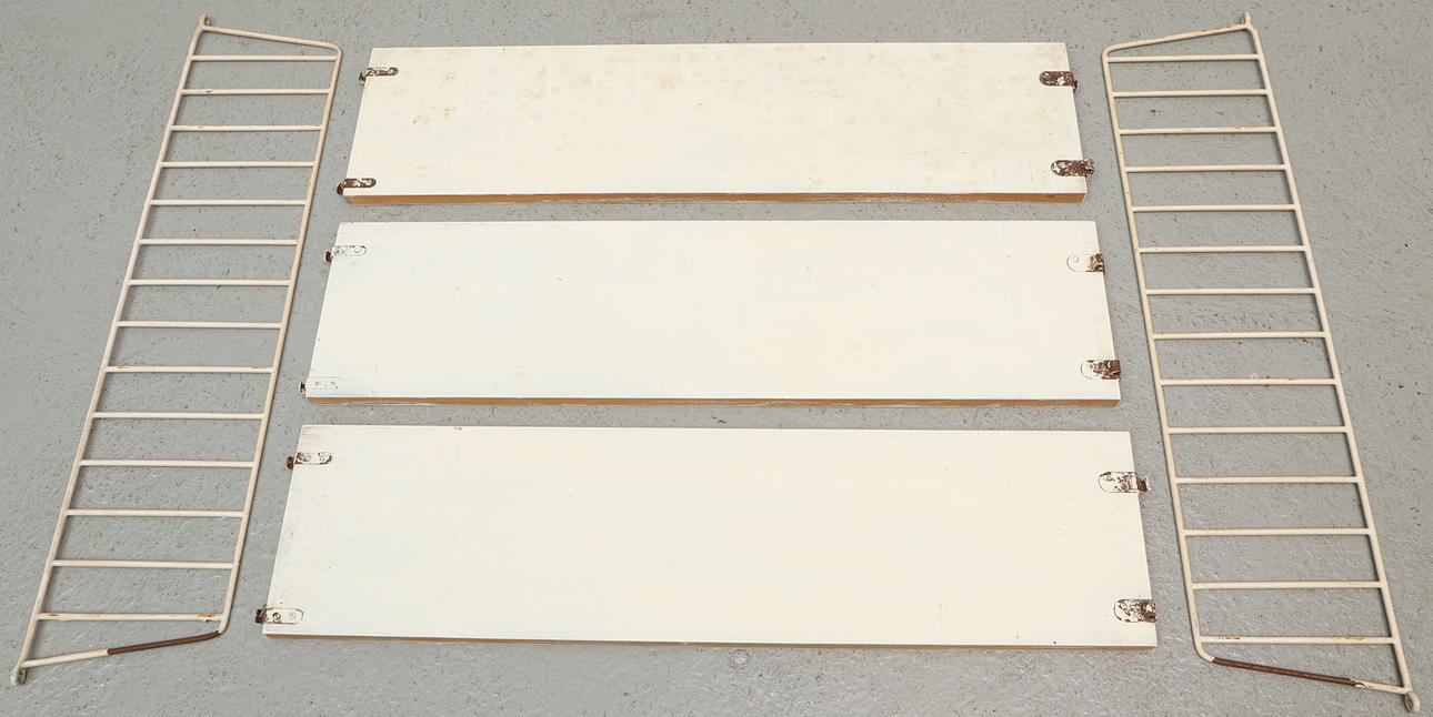 Hyllplan, 3 st. mått ca: 78x20 cm. Väggfäste, 2 st. höjd ca: 78 cm.