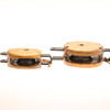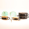 3 Block, trä, längd ca 19 - 32 cm 2 Flöten, glas, diameter ca 15 cm.