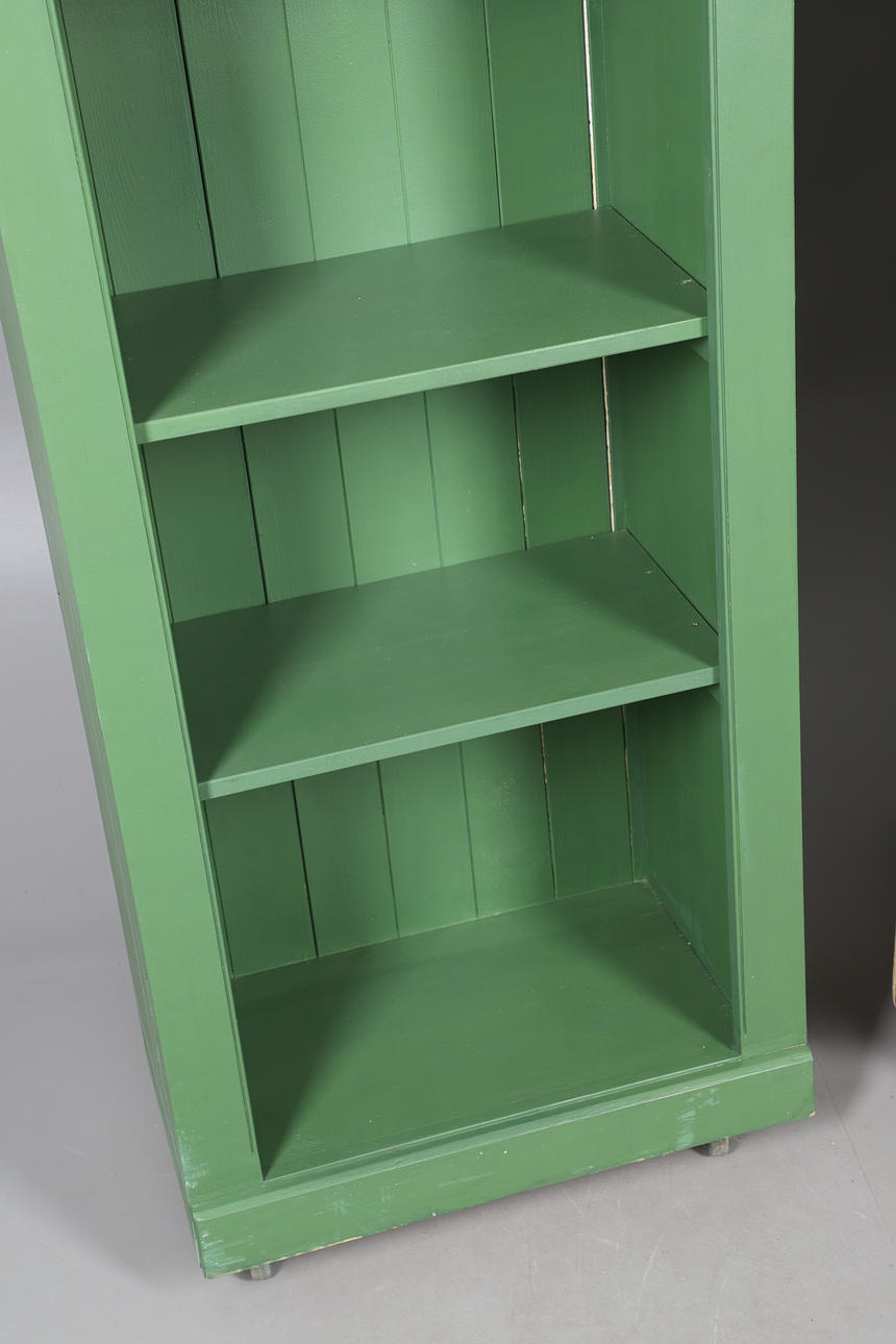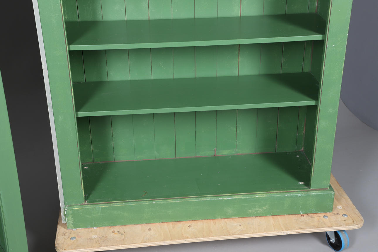 4431584. TVÅ MÅLADE ÖPPNA BOKHYLLOR.