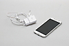 Med laddare. Telefon inköpt med Telenor, troligtvis också låst till Telenor.